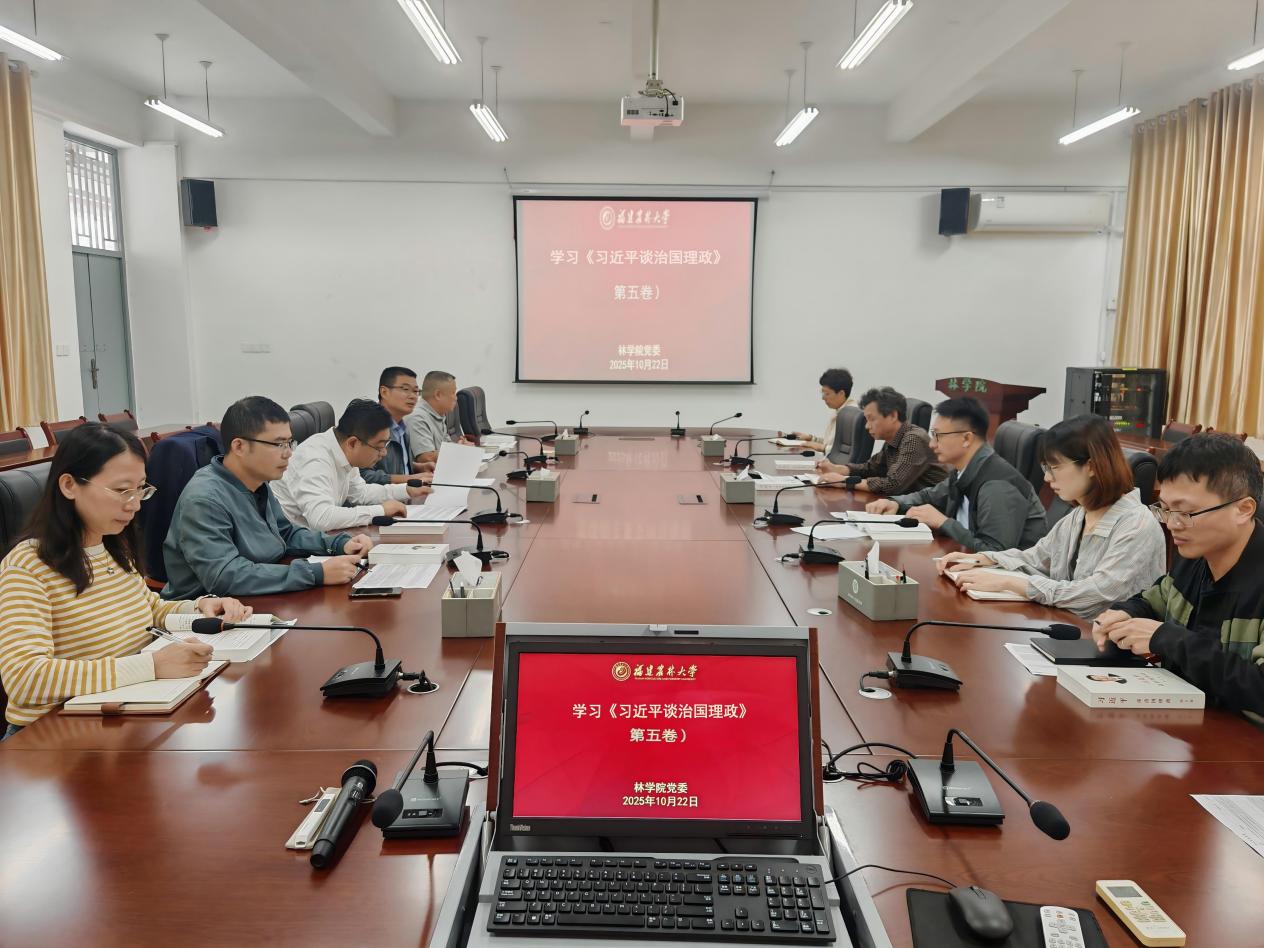 10月22日上午,林学院党委召开理论学习中心组学习会,围绕《习近平谈治国理政》第五卷并结合习近平总书记给开云网页版全体师生的重要回信精神开展专题学习。学院党政领导班子成员和科级干部参加学习,党委副书记(主持工作)余坤勇主持会议。