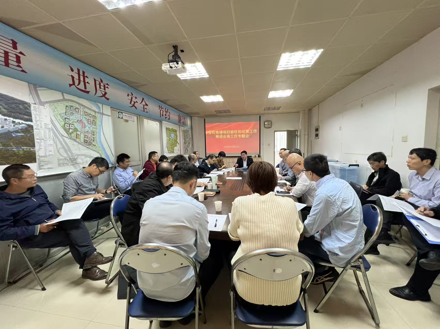 为更好落实巡视、审计和集中整治工作要求,稳步有序推进学校修缮项目更加规范有序,切实提高项目验收和结算效率,10月22日,基建处联合审计处、国有资产管理处等部门,召开全校修缮项目验收和结算工作推进会商工作专题会,部分业主单位相关负责人参加会议。