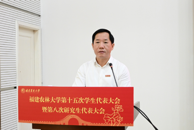 受校党委书记赖海榕委托,校党委副书记曾华平代表学校党委对本次大会的顺利召开表示热烈祝贺,并充分肯定了学生会、研究生会过去一年的工作成效。他指出,一年一度的学代会和研代会是全校青年学生政治生活中的一件大事,在全校深入学习贯彻习近平总书记重要回信精神之际召开此次大会,意义重大。学生会、研究生会是党委领导下的学生组织,是党联系青年学生的桥梁和纽带,要团结带领广大同学牢记嘱托、奋勇争先,展现福农学子的使命担当。同时,他代表学校党委向全校学生会组织和青年学生代表提出三点希望:一是在深学细悟中筑牢许党报国的信念根基,自觉把个人奋斗融入民族复兴伟大征程;二是在躬耕田野中练就强农兴农的过硬本领,积极投身乡村振兴和农业现代化建设;三是在守正创新中彰显敢为人先的青春锐气,切实做好服务同学、自我建设等各项工作。他强调,全体学生骨干要带头加强理论学习与实践,充分领会总书记重要回信精神,切实引导广大青年学子坚定不移听党话、跟党走,为学校争创国家“双一流”高校,为推进乡村振兴、建设农业强国贡献青春力量。