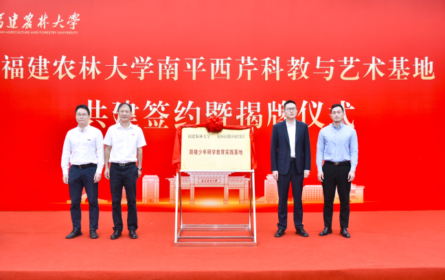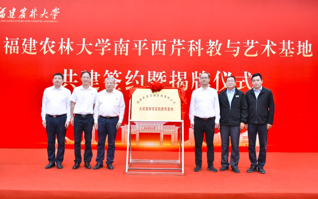 在与会领导嘉宾的见证下,钟军、林湫、余运庄、赖海榕、陈世奎、唐振鹏共同为福旅研学综合性实践共建基地揭牌。黄桂诚、王卫东、孟宪鲁、李九红、林占熺、陈世奎共同为第20届中美电视节获奖剧《幸福草》主要取景地揭牌。郑华、张志勇、吴志博、校教务处处长吴祖建、科教基地管理中心主任李芳辉、乡振学院副院长(主持工作)范胜龙共同为大武夷研学实践教育基地揭牌。张辉、陈帅蒙、李芳辉、校社会服务处副处长(主持工作)曹滨斌共同为鼓楼少年研学教育实践基地揭牌。张辉、陈帅蒙、校资源与环境学院院长蒋瑀霁、农学院党委副书记(主持工作)林喜强共同为福州市鼓楼区城建投资发展集团有限公司数字农业低空经济示范站揭牌。