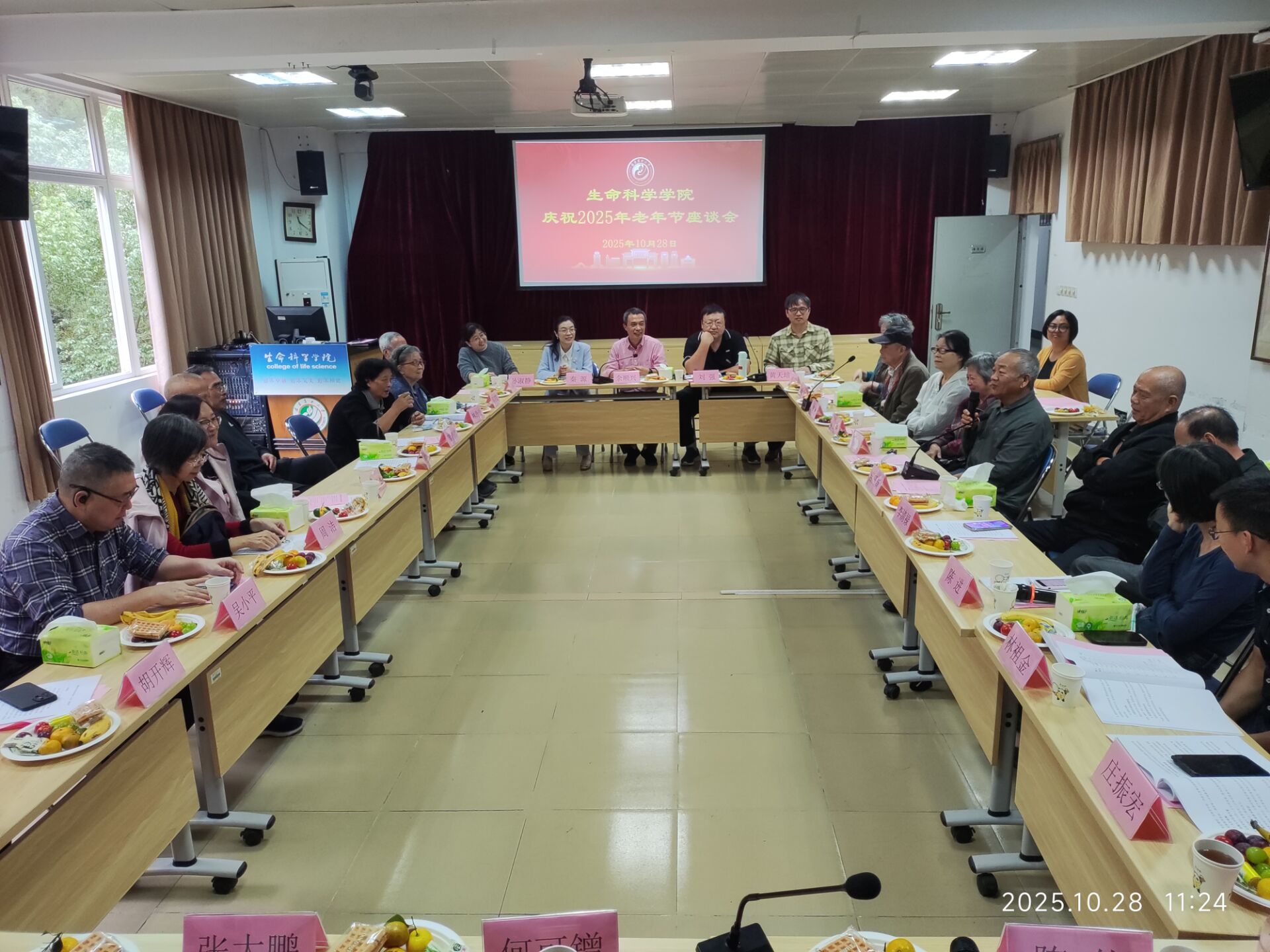 10月28日上午,生命科学学院在生科楼开展“共叙情谊、共话发展”2025年老年节活动,学院21位离退休教师、院领导班子成员、院工会主席、副主席、系主任等参加。