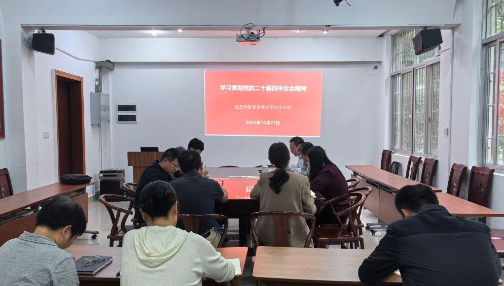 10月27日,园艺学院党委理论学习中心组召开会议,传达学习习近平总书记在党的二十届四中全会上的重要讲话精神和全会精神,传达学习福建省委常委会扩大会议和教育部党组扩大会议部署要求,研究部署学院贯彻落实举措,并交流学习体会。院党委理论学习中心组成员参加会议,院纪委委员、科级干部列席会议,会议由院党委书记孙思惟主持。