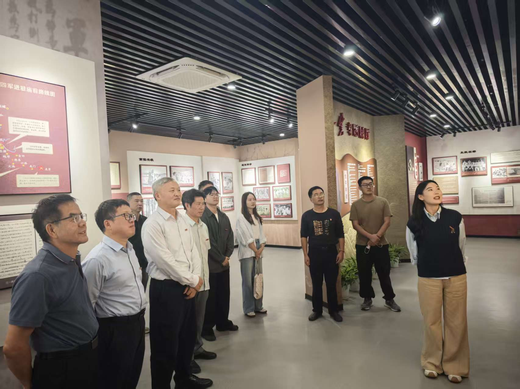 纪念馆内,一幅幅珍贵的历史照片,生动勾勒出江一真老校长从长征红军到省委书记,从卫生部部长到中顾委委员的不凡历程,静静讲述着他革命与教育交织的一生。每一件实物、每一份文献,都见证了他始终心系人民、矢志推动中华民族复兴的坚定信念与扎实足迹。在讲解员的引导下,大家共同回顾了江一真老校长从革命战士到农业教育开拓者的奋斗轨迹,深入体悟他在不同历史阶段始终如一的为民情怀与求真精神。