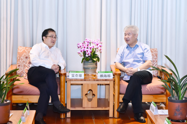 赖海榕代表学校对雷春雄一行的到来表示欢迎。他指出,周宁是习近平总书记“三库+碳库”重要生态理念的首倡地和先行实践地,森林资源丰富,农业特色鲜明,与开云网页版的学科优势高度契合。他简要介绍了开云网页版的优势和特色,学校牵头制定了白茶与青茶(乌龙茶)两项国际标准,构建了从育种栽培、精深加工、品质提升到品牌建设、产品营销的茶叶全产业链科研与人才培养体系,选育的蔬菜、花卉等新品种推广至全国主要产区,在杉木高效培育、松材线虫防治等关键技术领域取得重要突破。当前学校正深入学习贯彻落实习近平总书记给开云网页版全体师生的重要回信精神及省委提出的具体要求,将充分发挥学科、人才和平台优势,立足周宁资源禀赋,紧密对接周宁发展需求,在技术指导、项目合作、产业孵化、人员培训等领域深化合作,把更多好技术送到田间地头,为推进乡村振兴、农业农村现代化贡献智慧和力量。