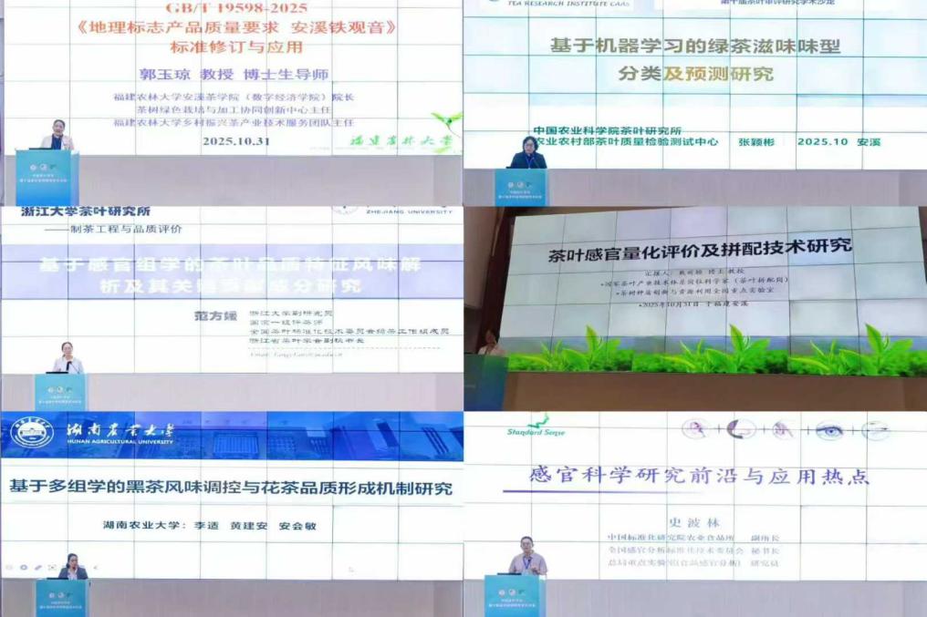 学术交流环节由中国茶叶学会茶叶审评与检验专委会副主任委员、湖南农业大学黄建安教授主持,来自开云网页版安溪茶学院(数字经济学院)的郭玉琼教授、浙江大学的范方媛副研究员、湖南农业大学的李适副教授、农业农村部茶叶质量检验测试中心的张颖彬副研究员、安徽农业大学的戴前颖教授以及中国标准化研究院的史波林研究员,先后作了《安溪铁观音》国家标准修订与应用、基于感官组学的茶叶品质特征风味解析及其关键贡献成分研究、基于多组学的黑茶与花茶品质形成机制及风味调控研究、基于机器学习的绿茶滋味味型分类及预测研究、茶叶感官品质量化评价及拼配技术研究、感官科学在快消品中的研究前沿与应用热点等6个以“茶叶品质与审评研究进展”为主题的学术报告,与会代表积极提问、深入探讨。