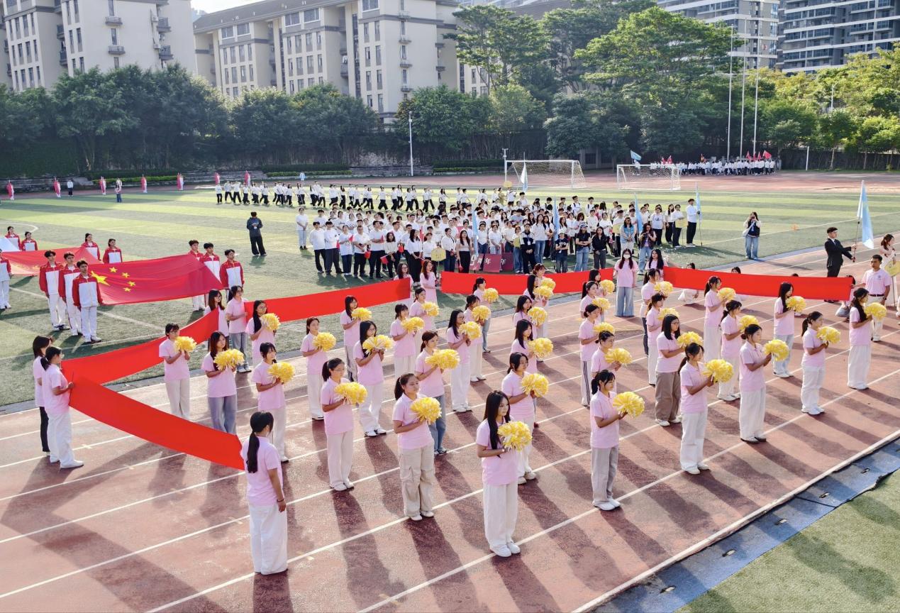 上午8时整,国旗护卫队手持国旗,步伐铿锵,率先入场。随后,校旗、会旗方阵依次入场,裁判组方阵、教工组方阵、各系(专业)方阵相继登场。各方阵设计别出心裁、号声高昂,迈着整齐的步伐向主席台行进。一支支队伍表演内容充实、编排新颖,既有青春活力的动感舞蹈,也有展现团队协作的创意变形,生动诠释了校区师生团结进取、昂扬向上的精神风貌。