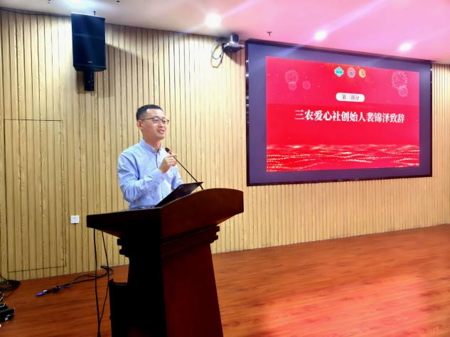 裴锦泽在发言中回顾了自2012年创社以来与社团共同成长的心路历程,指出本次社团重新成立是具有里程碑意义的重要节点。他指出,社团具有深厚的历史积淀和良好的发展基础,当前虽处于重组建设的关键时期,但已具备完善的资源体系支撑社员全面发展。他勉励全体会员,不应局限于学业成绩的提升,更应注重综合素质的全面发展,深入践行“服务三农、成长自我”的社团根本宗旨。