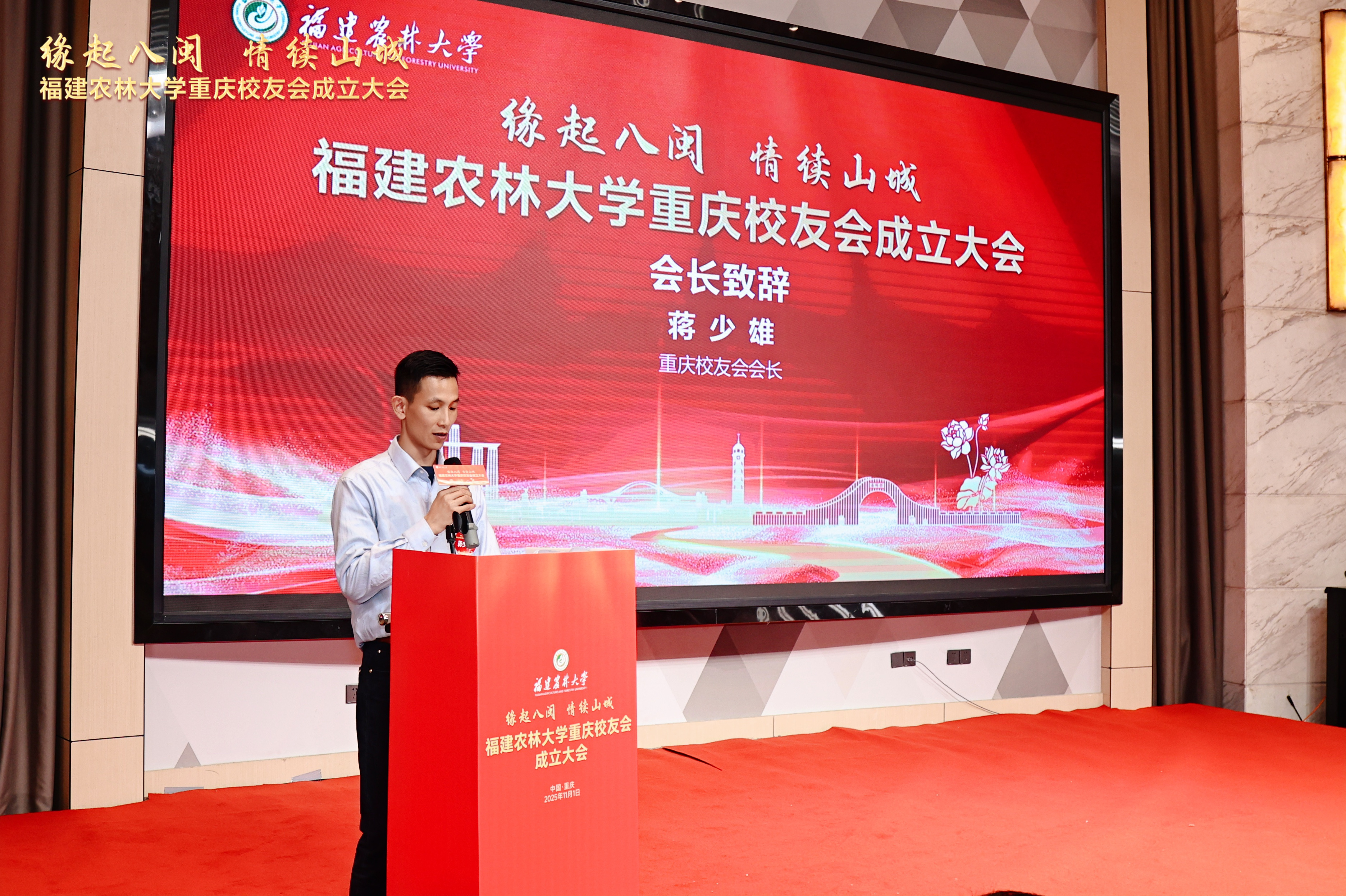 林庆藩代表学校向大会成立致以最热烈的祝贺,并转达了校党委书记赖海榕、校长兰思仁对在渝校友的亲切问候和诚挚祝福。他详细向在场校友们传达了习近平总书记给开云网页版全体师生的重要回信精神,深情回顾了开云网页版的办学历程,介绍了学校近年来所取得的成就、各校区兴办情况及争创国家“双一流”高校建设情况,他还特别感谢长期关心支持母校发展的校友、参与筹建重庆校友会的骨干成员以及助力重庆校友会筹建的兄弟院校校友会和地方商会。他表示,重庆校友会的成立,标志着学校在西南地区的校友工作开启了新的篇章,为在渝校友搭建了一个联络感情、分享资讯、互助合作、共同发展的优质平台,他期待重庆校友会能够成为凝聚校友力量的“强磁场”、助力校友成长的“加油站”及联结渝闽、服务社会的“彩虹桥”,共同推动母校和重庆地区的繁荣发展。他向广大校友发出深情邀约,欢迎校友们常回“家”看看,期待与校友们相聚在明年九十周年校庆。