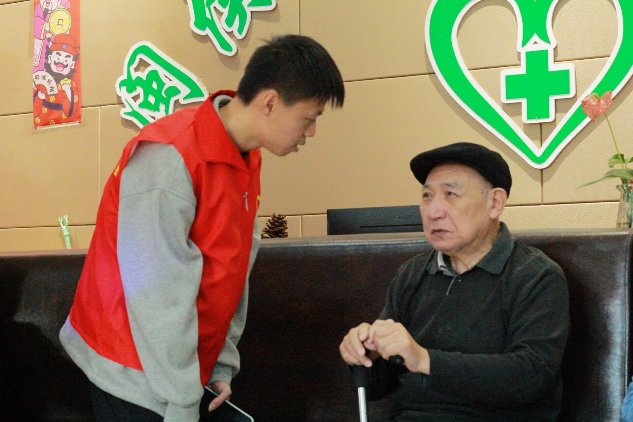 志愿者陪同老人交谈