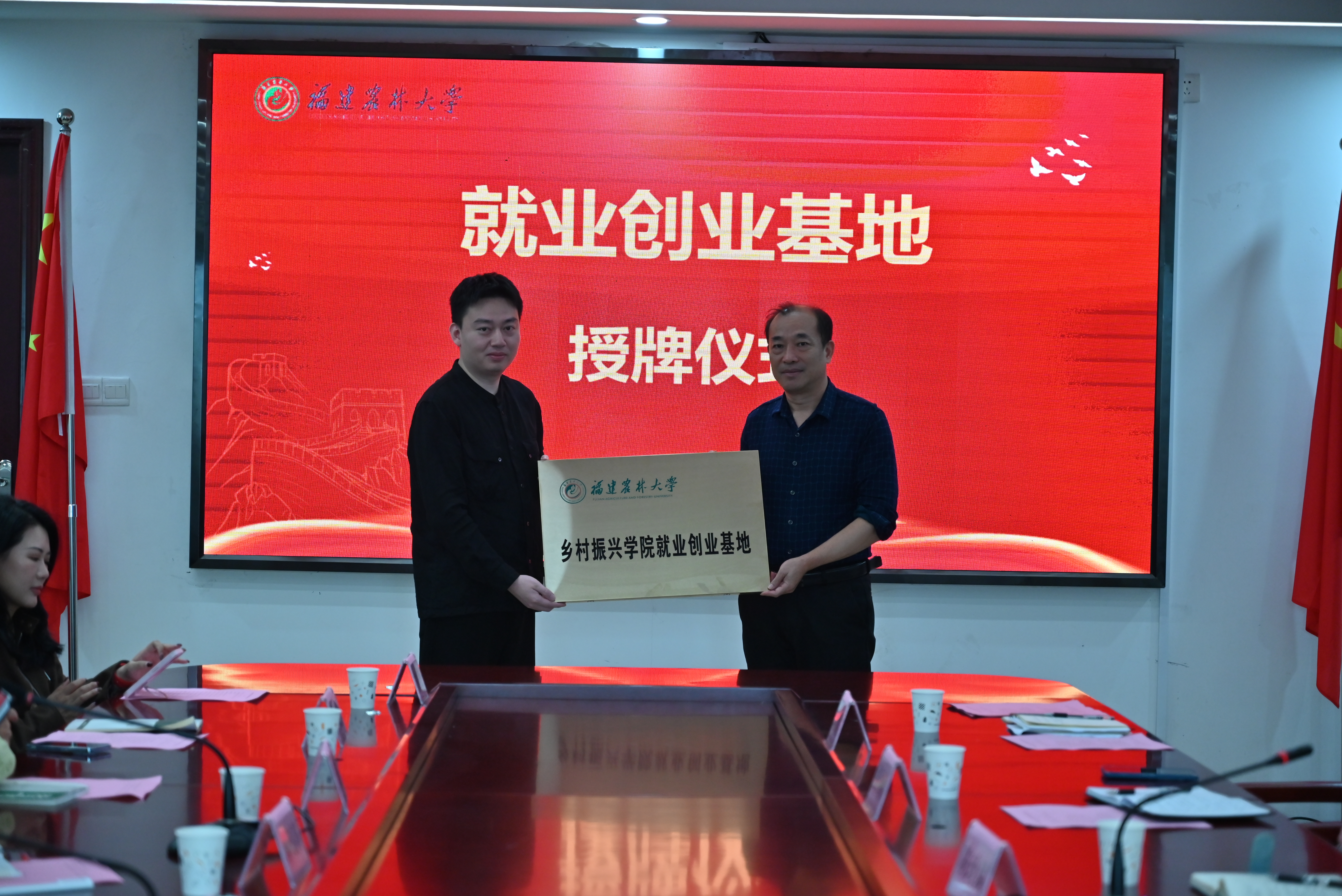 会上,学院副院长张国防为福建有点东西网络科技有限公司总经理张孔浠授予“开云网页版乡村振兴学院就业创业基地”牌匾。