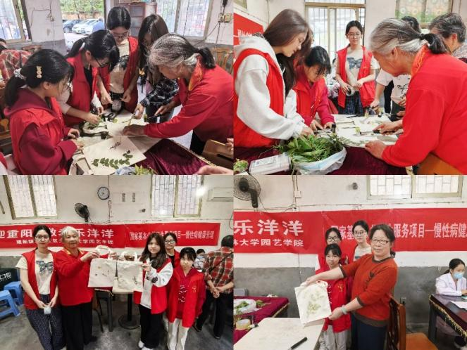 为弘扬中华民族尊老敬老的优良传统,践行志愿服务精神,10月29日,园艺学院含笑服务队联合农大社区,走进西边村开展“植染秋光,情暖重阳”主题的重阳节助老活动。师生们充分发挥专业特长,将园艺之美融入志愿服务,以植物为媒,以拓染传情,为社区老人送去一份独具匠心的节日温暖。