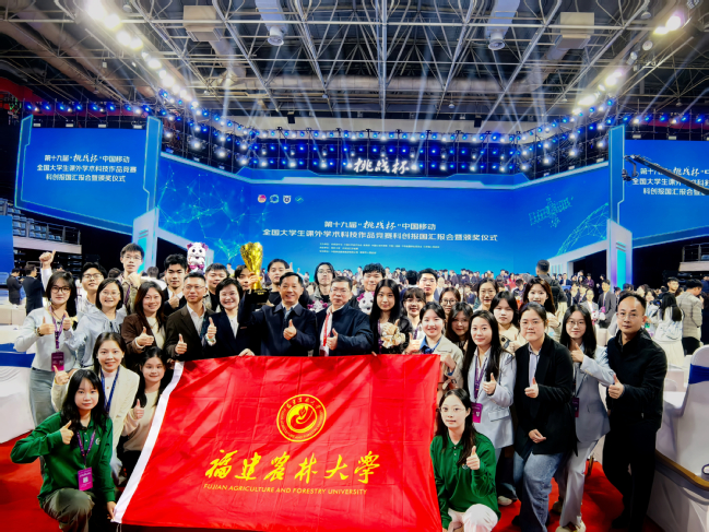 10月31日至11月3日,第十九届“挑战杯”全国大学生课外学术科技作品竞赛决赛、科创报国汇报会暨颁奖活动在南京大学举行。学校在主体赛、“揭榜挂帅”擂台赛、“人工智能+”专项赛共斩获国家奖25项,并以团体总分位列全国高校第36位的优异成绩捧得“优胜杯”,成为全国56所“优胜杯”高校中唯一一所农林类高校。学校高度重视“挑战杯”竞赛的育人价值,紧紧围绕立德树人根本任务和“双一流”建设目标,扎实推动科创育人工作,校党委书记赖海榕、校长兰思仁及相关校领导多次关心指导赛事组织工作,校党委副书记曾华平专程前往赛场,亲切看望并指导参赛师生。