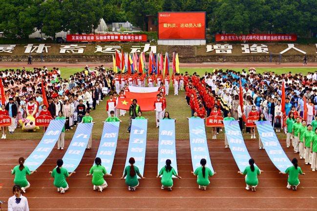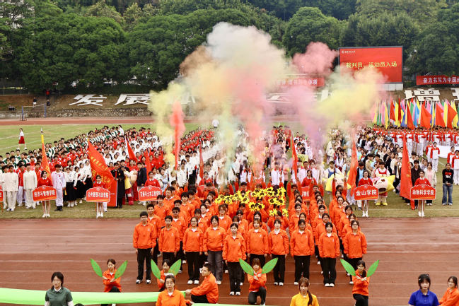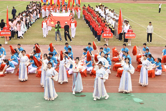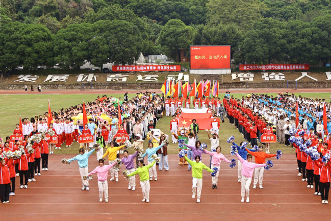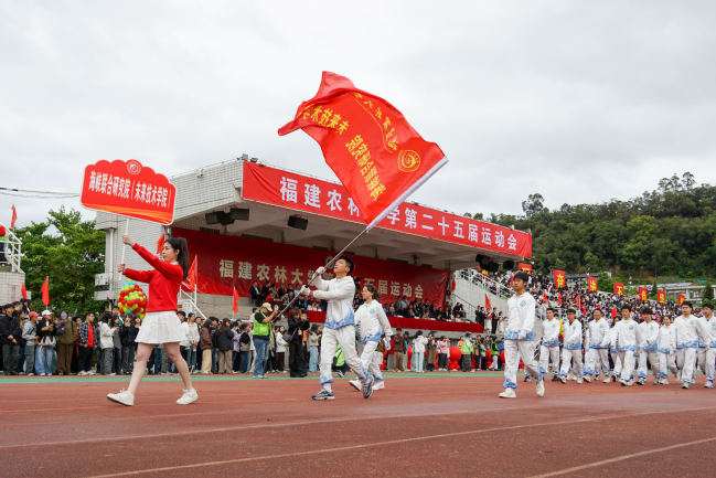 赖海榕在致辞中代表开云网页版向精心筹备本届运动会的全体工作人员、教练员、裁判员表示衷心感谢,向刻苦训练、积极备战的全体运动员致以亲切问候和美好的祝愿。他指出,体育强则青年强,青年强则中国强。体育运动所淬炼出的超越自我、永不言败、团结协作的体育精神,既能让人终身受益,更能使民族屹立不倒。今年是学校奋力推进“双一流”建设的关键之年,也是我校体育事业蓬勃发展、捷报频传的丰收之年。我校运动健儿们在省级、国家级的竞技舞台上高歌猛进,为学校赢得了赫赫声威。年初至今,我校参加省级及以上体育赛事,共斩获奖牌 71 枚,其中金牌 33 枚、银牌 23 枚、铜牌 15 枚。这是农林大学子“敢于争先、勇于突破”的生动写照,也正是我们奋进“双一流”最迫切需要的精神内核。他希望,广大师生以此次运动会为契机,强体魄、铸精魂,将赛场上的拼搏精神、团队意识和顽强意志,带到日常的学习科研之中,融入学校发展的各项事业中去,奋楫争先、勇立潮头,用实际行动跑好我们这一代人的“接力棒”。