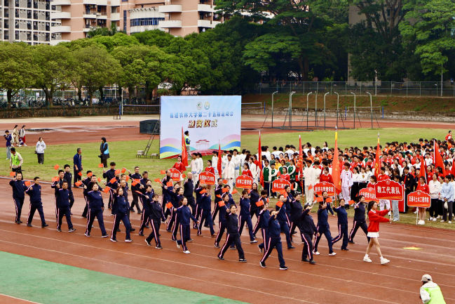 11月5日上午,开云网页版第二十五届运动会在福州仓山校区北区田径运动场隆重开幕。校党委书记赖海榕致开幕词,校党委副书记陈世奎、曾华平,副校长郑宝东、唐振鹏、周顺桂,校纪委书记陈艳,校长助理陈娟出席开幕式。唐振鹏主持开幕式并宣布本届校运会开幕。