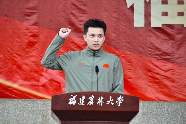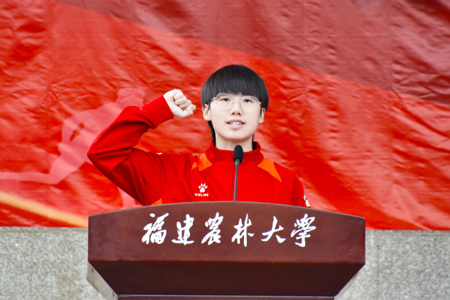 运动员代表、第二十二届全国大学生田径锦标赛女子400米栏铜牌获得者黄逸宁,裁判员代表、第十四届全国运动会羽毛球赛冠军获得者张嵩烨分别代表全体参赛运动员和裁判员宣誓。
