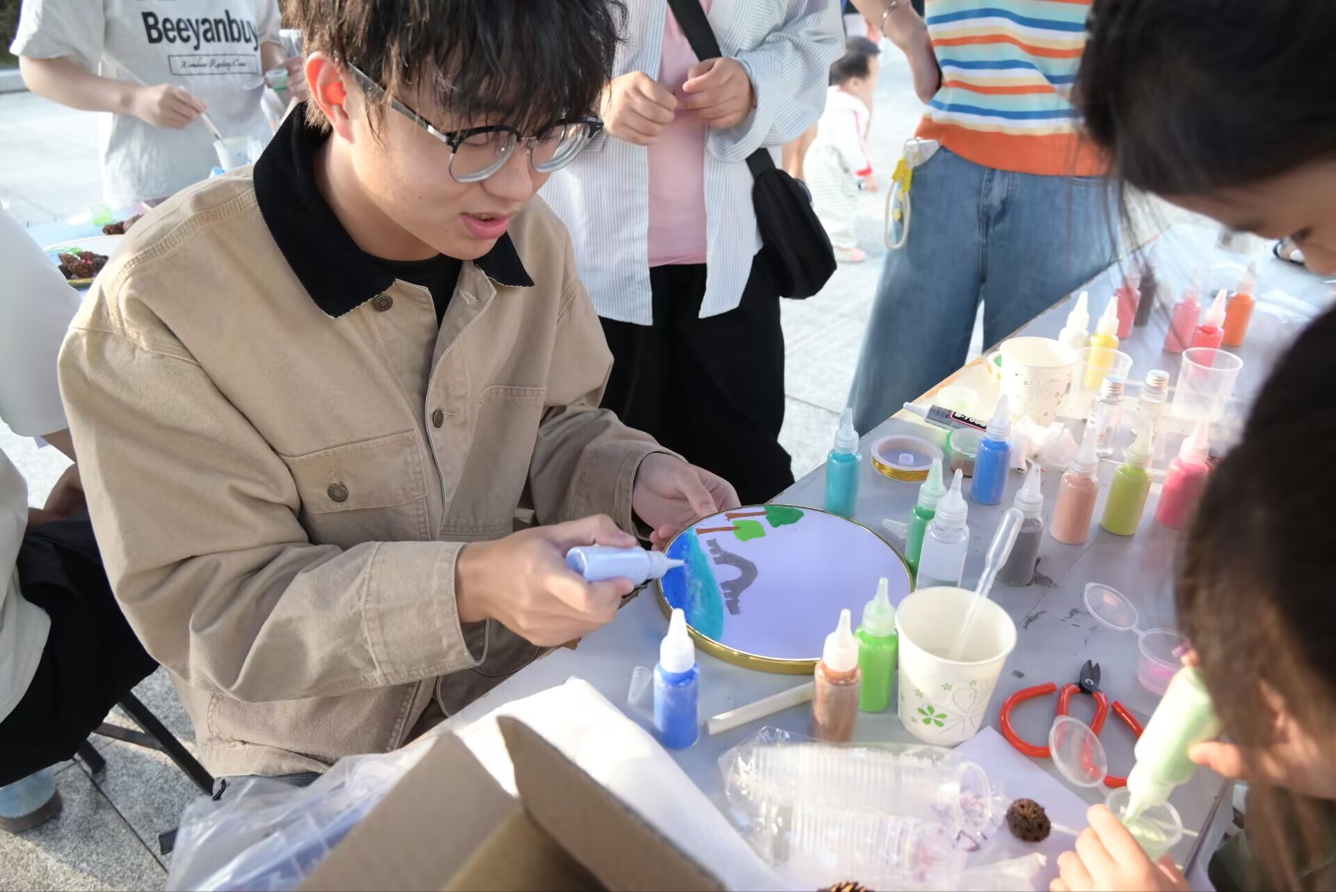活动以趣味十足的破冰小游戏拉开序幕。同学们置身于中华园的盎然绿意中,通过“好运乒乓球”“趣味投壶”等互动游戏,逐渐放松身心、拉近距离,现场气氛迅速升温。随后进入以“献礼FAFU”为主题的沙画创作环节,大家以沙为墨、以指为笔,将自然观察与内心感悟融入创作,在指间流沙中描绘出对校园的热爱与对自然的共鸣。