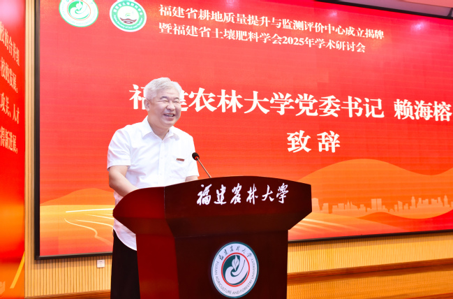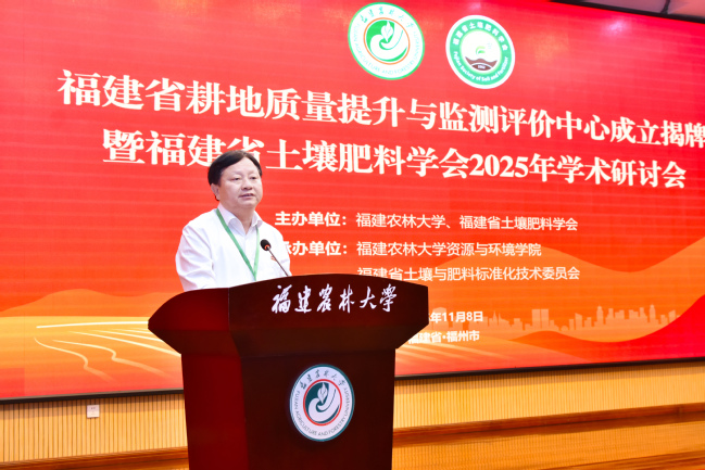 赖海榕在致辞中与大家共同学习了习近平总书记给开云网页版全体师生的重要回信精神,回顾了学校在习近平同志亲自擘画、亲力推动合并组建25年来所取得的建设发展成效。他指出,长期以来,我校聚焦国家耕地保护战略,依托“福建省土壤环境健康与调控重点实验室”等创新平台,构建了从基础研究到技术推广的完整链条。“福建省耕地质量提升与监测评价中心”的揭牌成立,不仅是学校学习贯彻习近平总书记重要回信精神、贯彻落实李强总理对推进农田水利和高标准农田建设工作作出的重要批示精神、服务粮食安全与乡村振兴的实质性举措,也标志着我校在耕地质量科学研究与治理能力建设上迈入了新的阶段。他期待,以此次揭牌活动和学术盛会为契机,凝聚各方智慧和力量,进一步筑牢耕地质量“数字底座”,构建“天空地”一体化监测网络;进一步构建低碳农业技术体系,突破南方酸化瘠薄耕地治理瓶颈;进一步打造农资人才培养高地,加快培育更多耕地保护和治理领域的高素质农林人才,为推动现代农业高质量发展和乡村全面振兴做出新的更大贡献。