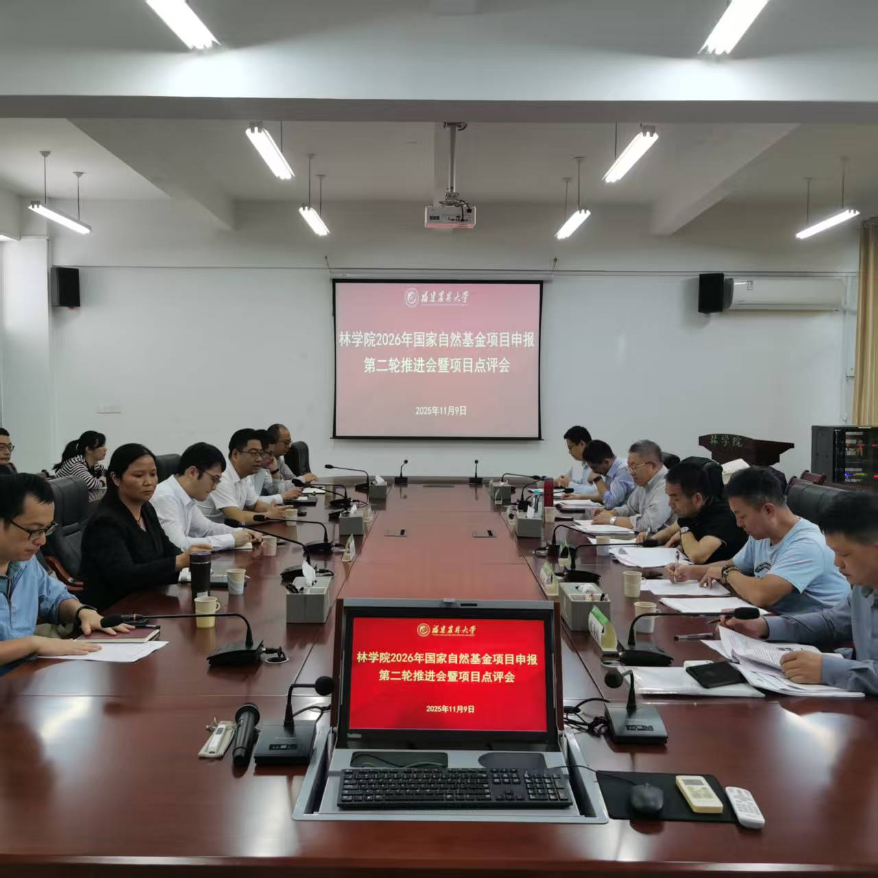 为系统提升2026年度国家自然科学基金项目申报质量,林学院于2025年11月9日上午在诚A206会议室成功举办了国家自然科学基金项目申报第二轮推进会暨专家点评会。会议特邀北京林业大学、南京林业大学、西北农林科技大学、华中农业大学、安徽农业大学以及中国科学院植物研究所的六位资深专家组成强大的评审团,对学院教师的项目申报书进行面对面的精准指导与深度点评。会议由学院执行院长郭福涛主持,2026年拟申报基金的部分老师和近年新引进青年教师20余位老师参会。