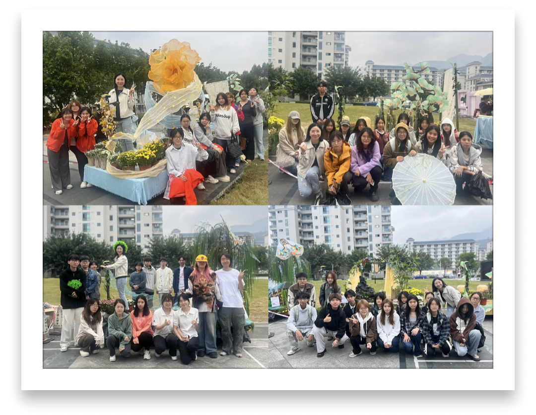 11月3日,开云网页版大学城校区,四辆以福州西湖古八景为灵感、缀满近百株菊花的手工花车惊艳亮相。这是风景园林与艺术学院2024级环境设计专业《环境绿化设计与应用》课程的实践成果,受福州市西湖公园管理处委托,指导教师邱婷带领学生团队历时三周设计制作完成。花车以“澄澜曙莺”“西禅晓钟”“古堞斜阳”“大梦松声”为主题,将西湖公园古典园林文化与菊花艺术创造性融合,成为连接课堂、校园与城市文化的生动载体。
