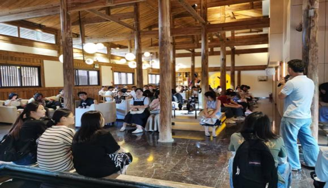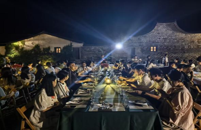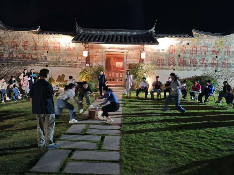 入宿三落厝当晚,实践队师生的草坪团建晚宴在古厝的青砖黛瓦映衬下拉开序幕。晚风拂过草坪,长桌旁摆满当地特色美食,师生们褪去行程疲惫,围坐畅谈。各班班委精心设计了贴合 MPA 专业场景的互动游戏,欢声笑语中打破了日常课堂的距离感,轻松活跃的氛围感染着每一位成员,同学之间、师生之间的交流也愈发坦诚深入。活动落幕时,夜色已深,古厝褪去了白日的热闹,回归静谧安宁。大家徜徉古厝幽静的廊道,听着虫鸣与远处溪流声,古厝的斑驳墙体与星空相映成趣,这份远离城市喧嚣的宁静,不仅舒缓了身心,更让师生们在独处与相伴中沉淀思绪、拉近心灵距离。独特的古厝夜宿体验,为 MPA 实践队的团建增添了别样温情,也为后续的实践工作筑牢了团队根基。