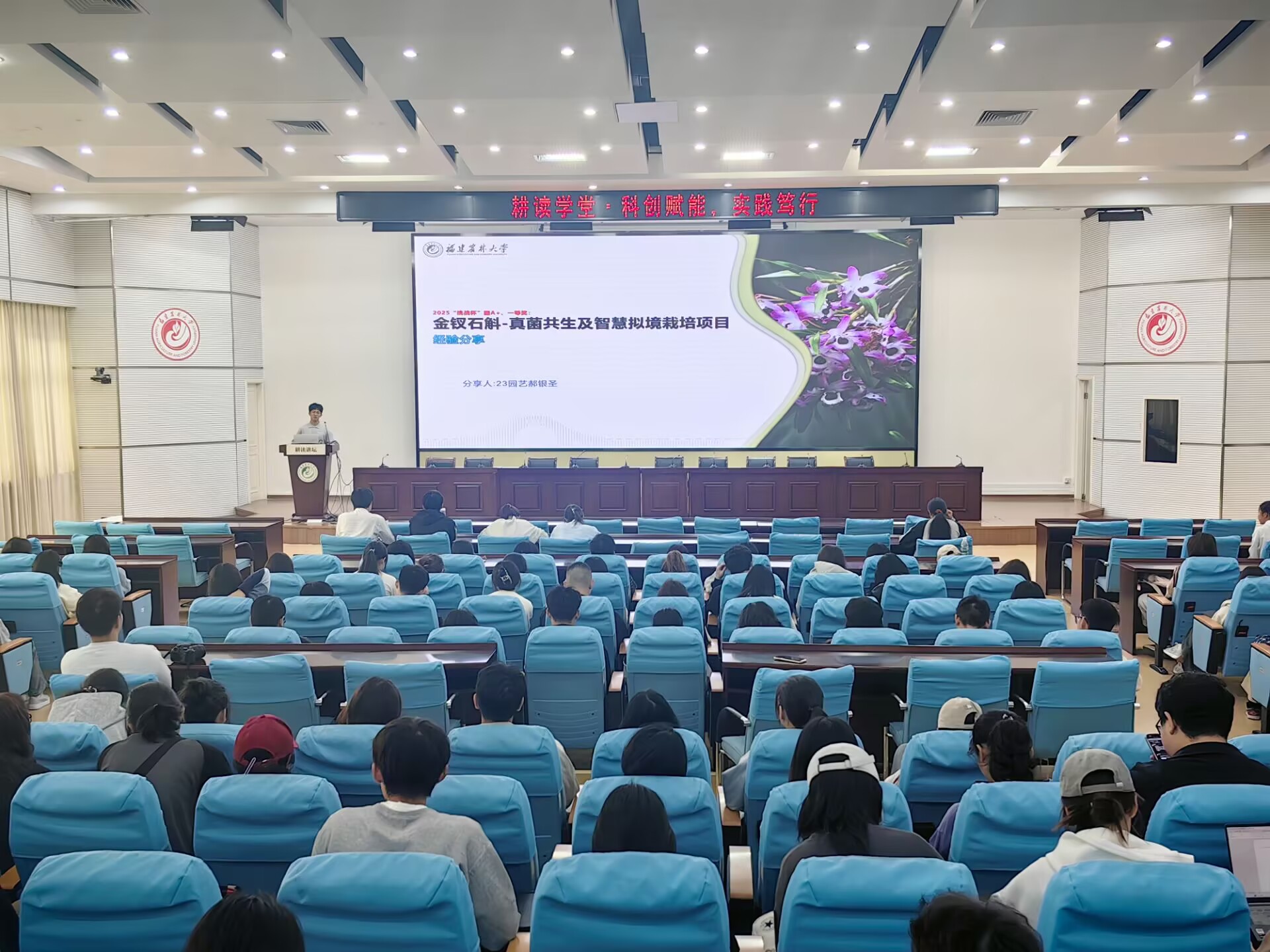近期,园艺学院第六期“耕读学堂”在禧强楼学术报告厅举行。本次活动以“科创赋能,实践笃行”为主题,特邀四支校级暑期“三下乡”社会实践优秀团队代表、第十九届“挑战杯”揭榜挂帅专项赛一等奖获得者郝银圣同学作专题分享,学院340名本科生现场参与。