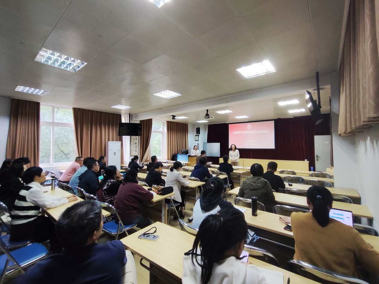 为助力青年教师教育教学发展,落实学院“教师教育教学发展系列活动”,不断提升学院教师教育教学水平,11月12日下午,学院在生科楼414会议室举办“教师教育教学发展系列活动——生命科学竞赛参赛全流程解读”系列讲座2025年度第四讲,邀请多次获得全国大学生生命科学竞赛一等奖及其他大赛奖项的张惠莹副教授作主题报告,分享参加生命科学竞赛大赛经验。讲座由学院院长秦源主持,副院长黄天培和学院各系40余位教师参加活动。