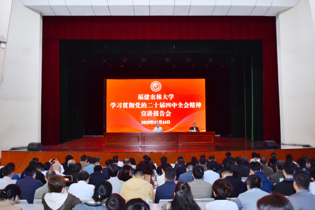 与会师生认真聆听、仔细记录,现场学习氛围热烈,不时爆发出阵阵掌声和会心的笑声。大家一致认为,宣讲内容丰富、语言生动、解读透彻、深入浅出,既有理论高度又有实践深度,既站位全局又着眼大局,既研究问题又提出对策,具有很强的政治性、思想性、针对性,对于深刻领会和准确把握全会精神具有重要的指导意义。将学深悟透党的二十届四中全会和习近平总书记给我校全体师生的重要回信精神、把握实践要求,切实把思想和行动统一到中央、省委决策部署和校党委工作要求上来,立足新起点,主动对接学校“十五五”规划部署,担当实干、奋勇争先,为加快建成农林特色鲜明的全国一流大学、奋力谱写中国式现代化福建篇章贡献智慧和力量。