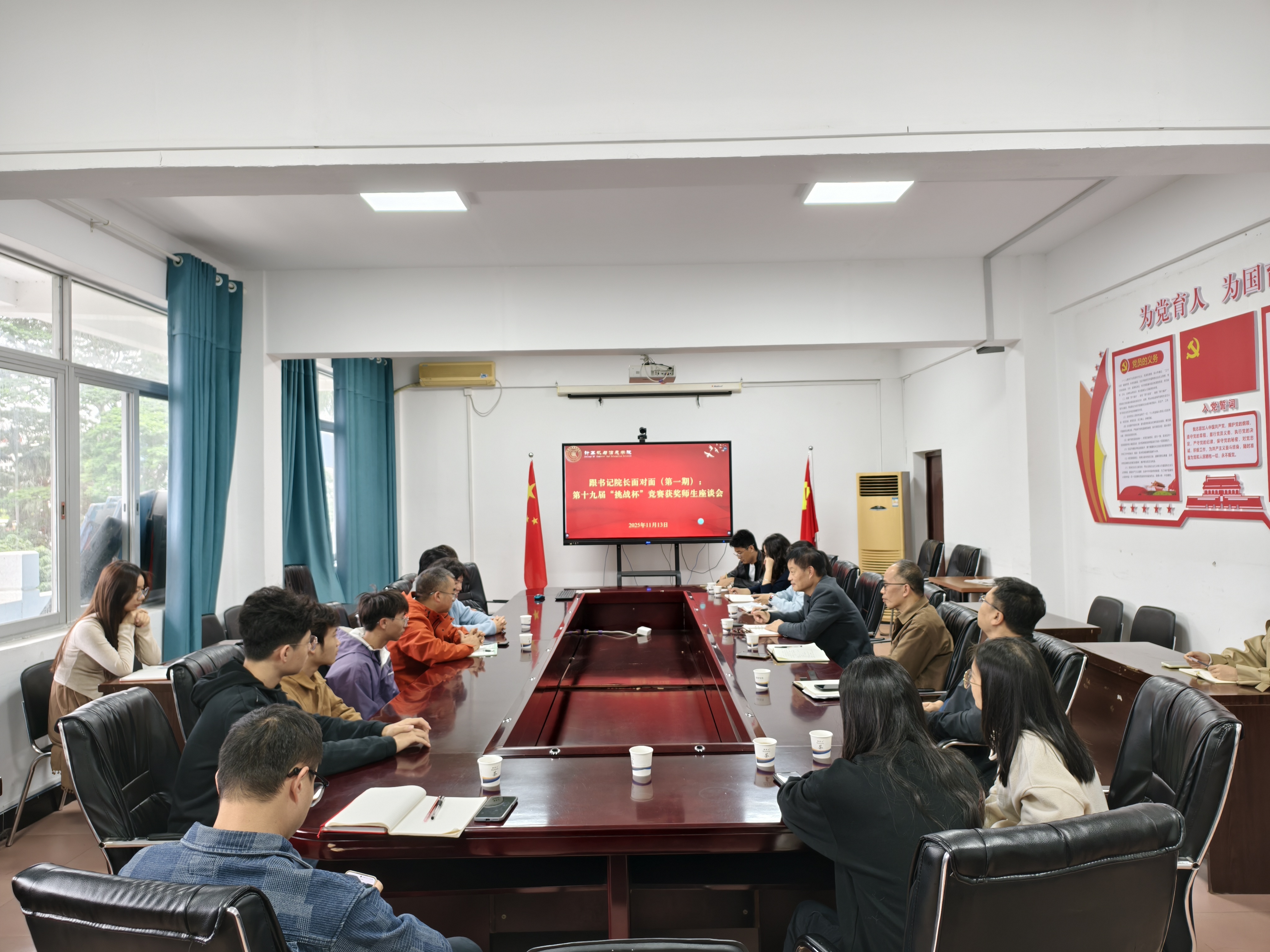 11月13日,计算机与信息学院在院办302室召开首期“跟书记院长面对面”活动。学院党委书记曾起郁、院长钟一文、党委副书记陈菁、副院长王李进出席,学院政工参加,与载誉归来的第十九届“挑战杯”“人工智能+”挑战赛特等奖获奖师生齐聚一堂,分享获奖喜悦,总结成功经验,共谋学院科创育人工作新篇章。座谈会由院团委副书记季平主持。