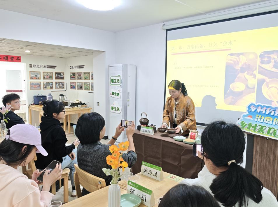 陈玲凤在总结中指出,非遗蛋茶进校园为乡村振兴驿站增添了乡村的烟火气息,活动的成功举办为“一站式”学生社区活动开展拓宽了工作思路。她分享了乡村振兴CEO主理人岗位招聘信息,发出“把乡村交给青年管理”的号召,呼吁同学们加入乡村振兴的实践队伍中,为自己的家乡贡献自己的一份力量。下阶段,学院将继续以一站式学生社区为阵地,让非遗手艺走出传统村落,让学生在动手实践中感受传统手艺的巧思,在躬身体会中读懂非遗的文化内涵,持续将学院一站式学生社区打造成轻松解压的社区社交场景、非遗年轻化传播的新载体,让传统非遗与青春气息碰撞出别样火花。