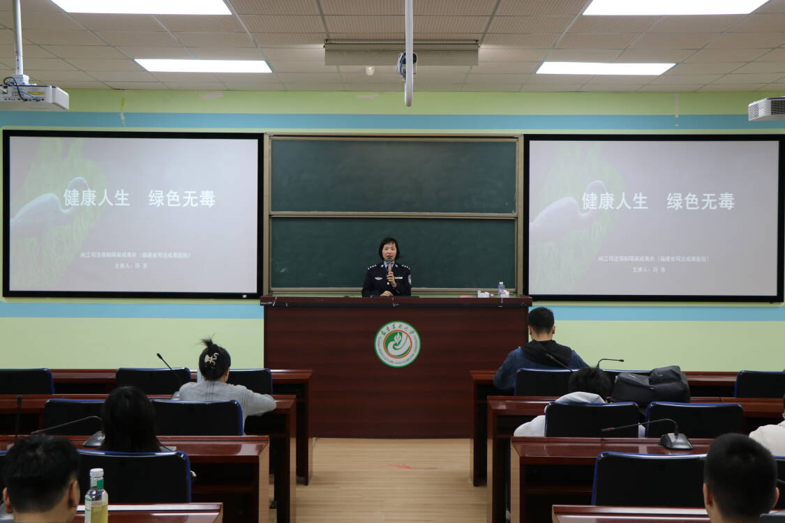 当日上午9时,主题讲座在禧强楼206智慧教室如期开讲。福建省闽江司法强制隔离戒毒所(福建省司法戒毒医院)三级警长许多以真实戒毒案例为切入点,系统讲解传统毒品特性,并重点揭秘新型毒品“零食化”“潮流化”的伪装陷阱——那些看似普通的奶茶、饼干、跳跳糖,可能暗藏合成毒品风险。许多警长深入剖析了毒品对个人身心健康的不可逆伤害、对家庭幸福的毁灭性打击及对社会稳定的严重危害,同时结合《中华人民共和国禁毒法》等相关法律法规,明确涉毒行为的法律后果,引导师生深刻认识禁毒工作的严肃性与重要性,牢固树立“防毒于未然、拒毒于千里”的思想防线。