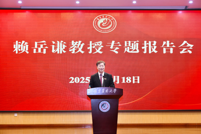 赖岳谦为我校师生作专题报告。他分享了小时候的故事,诠释了两岸同根同源的血脉亲情。他回忆道,父亲在他幼时便带他识茶品茶,待年岁渐长,才恍然知晓,父亲钟爱的乌龙茶源自福建,那份浸润日常的茶香,早已悄然承载起父亲未语的乡愁。他也曾不解为何父亲晚年选择南投水里安居,直至后来才发现,那里的山水风物,竟与祖籍福建龙岩的古田镇别无二致。其父一生内敛,心中情愫从不轻易言说,却将对故乡的深切眷恋,都融在了那一盏茶汤与那一方山水之间。谈及当前国际形势,他结合自身在政治学、国际关系等领域的深厚学术积淀,从历史文化和当代国际政治等多维角度,深入剖析了当前中日关系及台海局势发展。他还结合自身求学和研究经历,强调跨学科及多语言学习对拓展思维、提升综合能力的重要性,勉励青年学子既要深耕专业、筑牢根基,也要打破学科壁垒、兼收并蓄,以多元学识赋能成长,用开阔视野拥抱未来,奋力跑好历史的接力棒,为中华民族伟大复兴贡献青春力量。