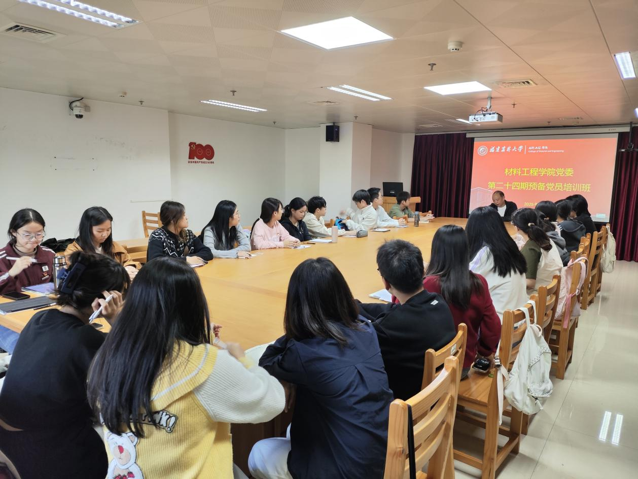 11月14日,材料工程学院党委在福州大学城校区仁德楼423举行第二十四期预备党员培训班开班仪式。学院党委书记林豪森和党委委员、组织员陈贤武出席并授课,28名新发展预备党员参加培训。
