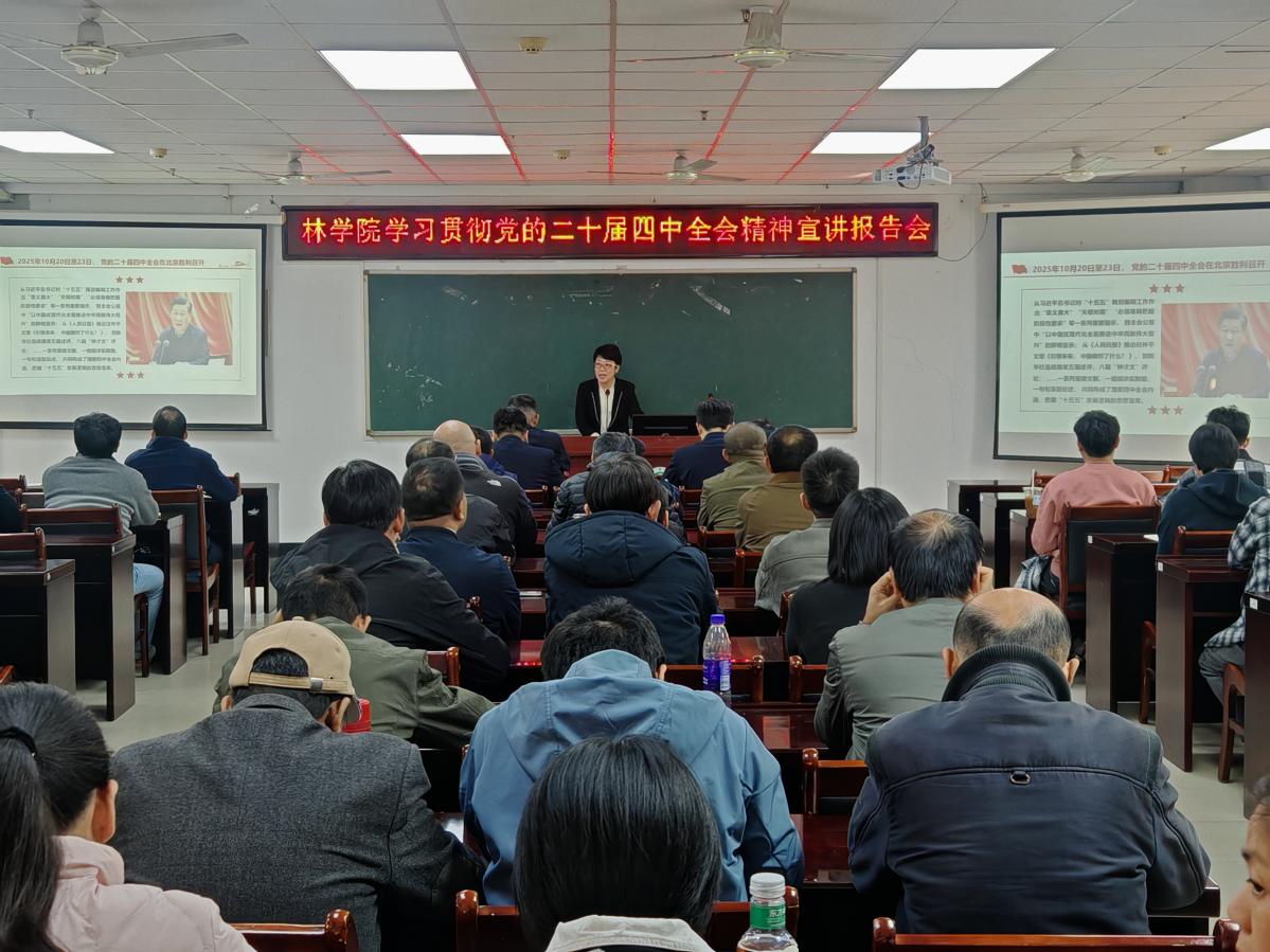 11月20日下午,林学院在田C215举行学习贯彻党的二十届四中全会精神宣讲报告会,特邀马克思主义学院于峰老师作专题宣讲。学院全体教职工参加学习,报告会由院党委副书记(主持工作)余坤勇主持。