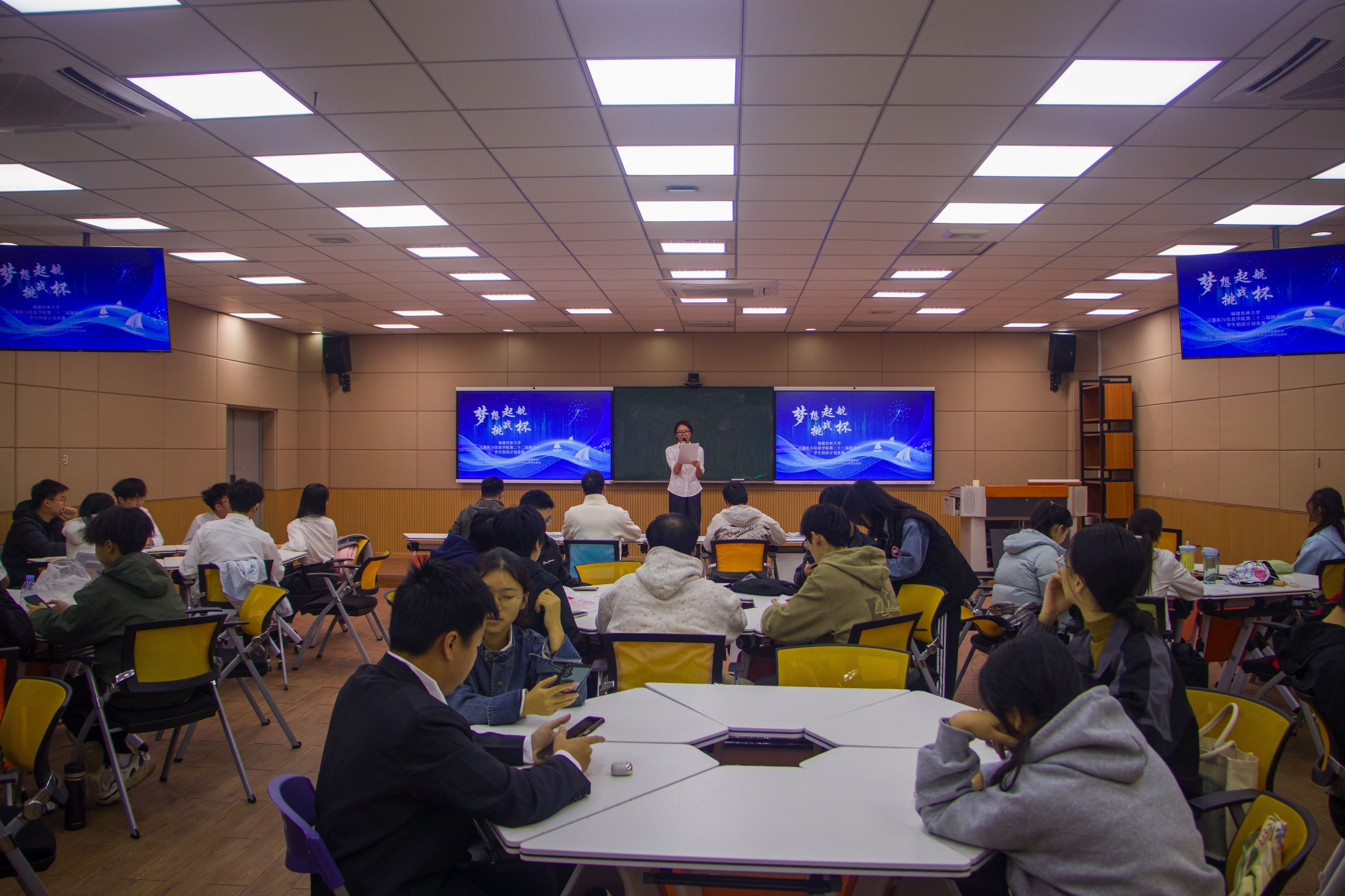 本次竞赛共有十六支队伍参加,分为乡村振兴和农业农村现代化、科技创新和未来产业两个赛道。在路演展示环节,各团队围绕项目背景、核心技术、商业模式与发展规划进行了精彩阐述。答辩环节中,评委老师们从项目的创新性、可行性、社会价值等角度进行了专业提问与点评。