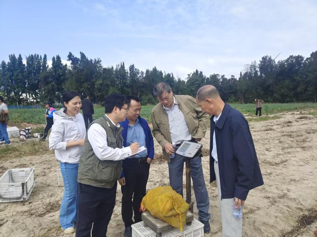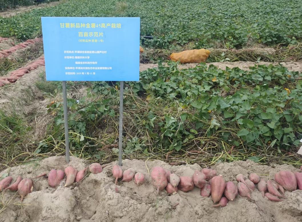 本次“金薯 45”示范片建设严格遵循科学种植规范,总面积达 102 亩,选取当地主栽的“普薯 32 号”作为对照品种,从品种对比维度保障数据客观性。示范片于 2025 年 5 月 29 日实现统一播种,10月29日正式进入收获期,生长周期完全契合平潭当地甘薯种植规律。全程遵循平潭当地甘薯常规栽培技术规范,落实整地、施肥、灌溉、病虫害防治等田间管理措施,确保示范片种植条件与农户实际生产场景高度一致。
