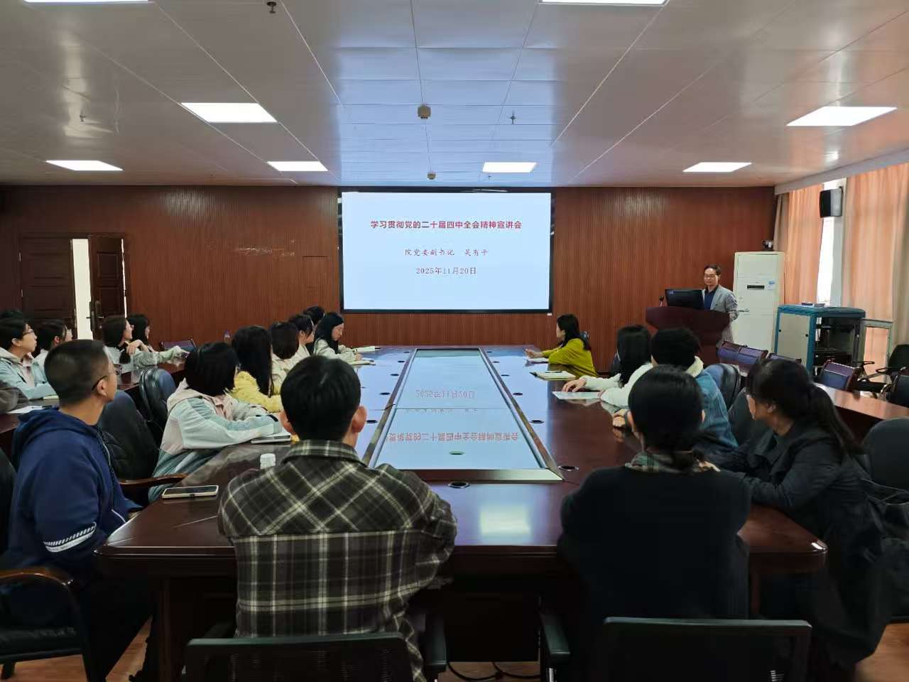 为深入学习贯彻党的二十届四中全会精神,11月20日,食品科学学院在310会议室召开党的二十届四中全会精神开宣讲会,学院党委副书记吴有平主讲,师生代表参会。