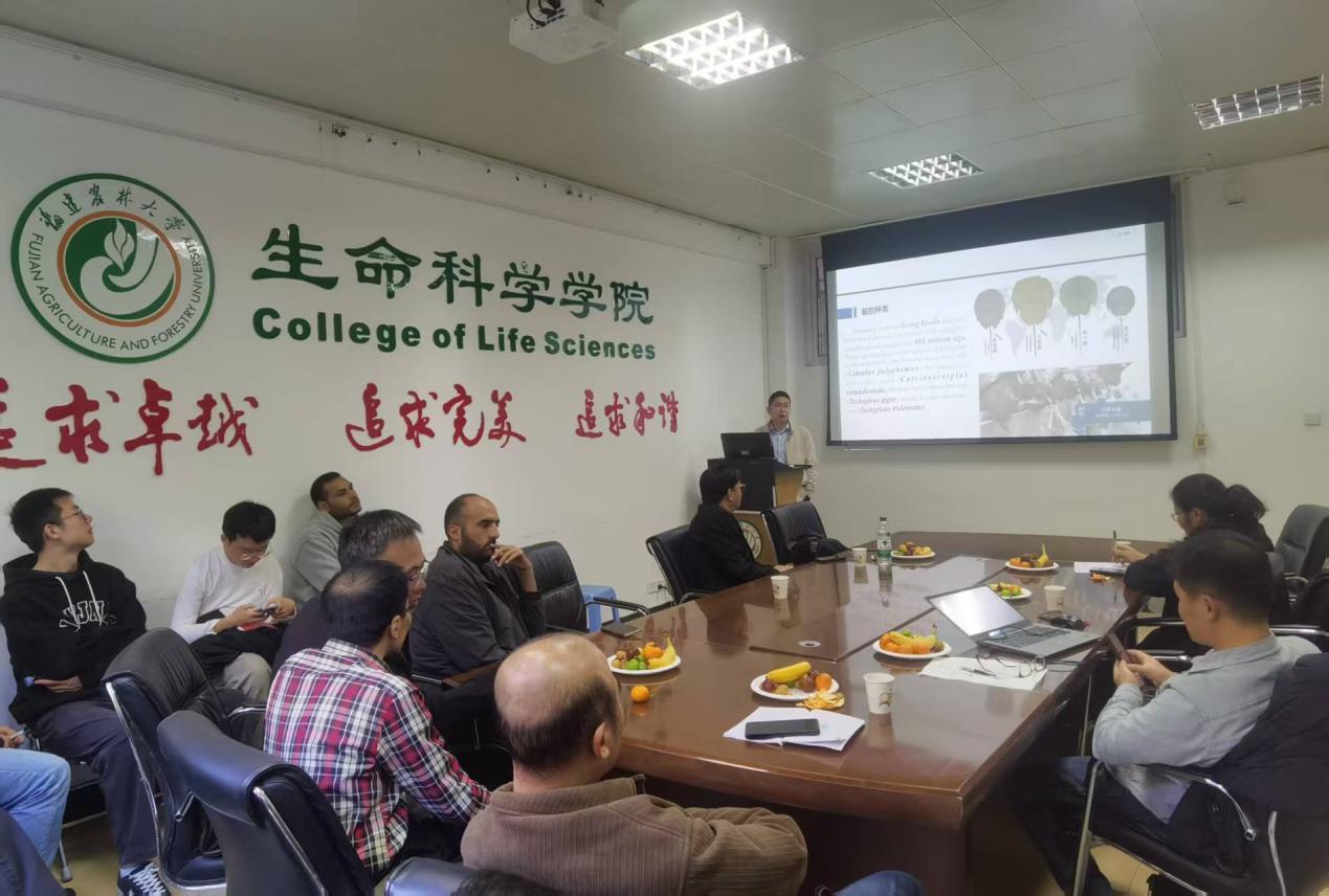 11月 20 日,生科楼 404 会议室座无虚席,在学院领导关心和支持下,生物科学系“生生不息”系列讲座首场活动成功举办,本次讲座特邀集美大学水产学院闽江学者特聘教授、领军人才陈天圣,以及福建省淡水所工程师陈志联袂开讲,为现场学子带来一场兼具学术深度与实践温度的生命科学盛宴。会议由生物科学系主任庄振宏主持,出席本次会议的还有福建创投环境检测有限公司、福建创投环境检测有限公司司法鉴定所史国凯副总经理和福建省水产技术推广总站林蔚郎高级工程师等专家。