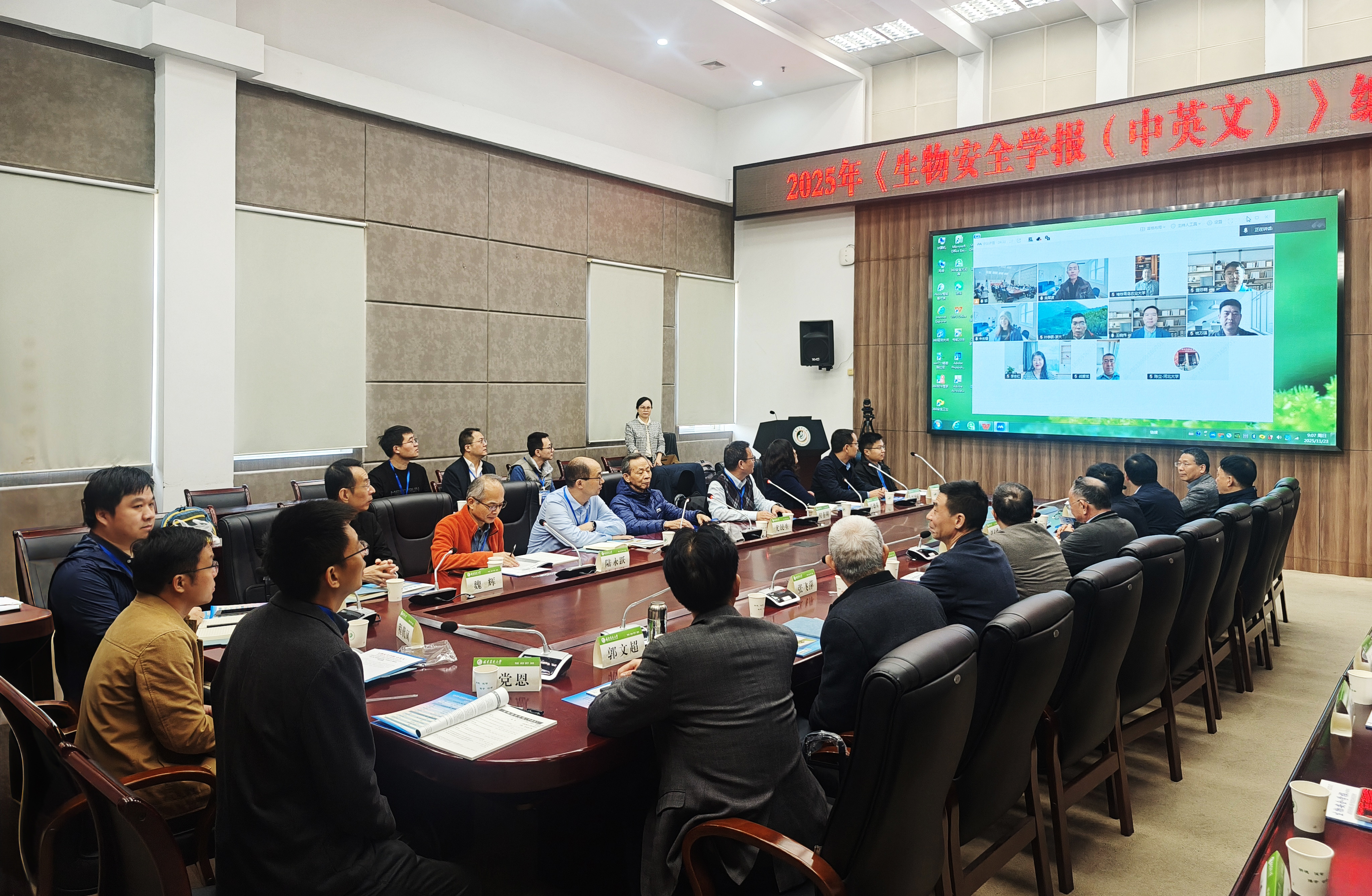 2025年11月23日,2025年《生物安全学报(中英文)》编委会扩大会议在开云网页版明德楼举办。会议以线上线下融合模式召开,共同为期刊高质量发展建言献策。这是该学报深入贯彻落实习近平总书记给开云网页版全体师生重要回信精神的具体实践,也是响应国家生物安全战略部署的关键举措。
