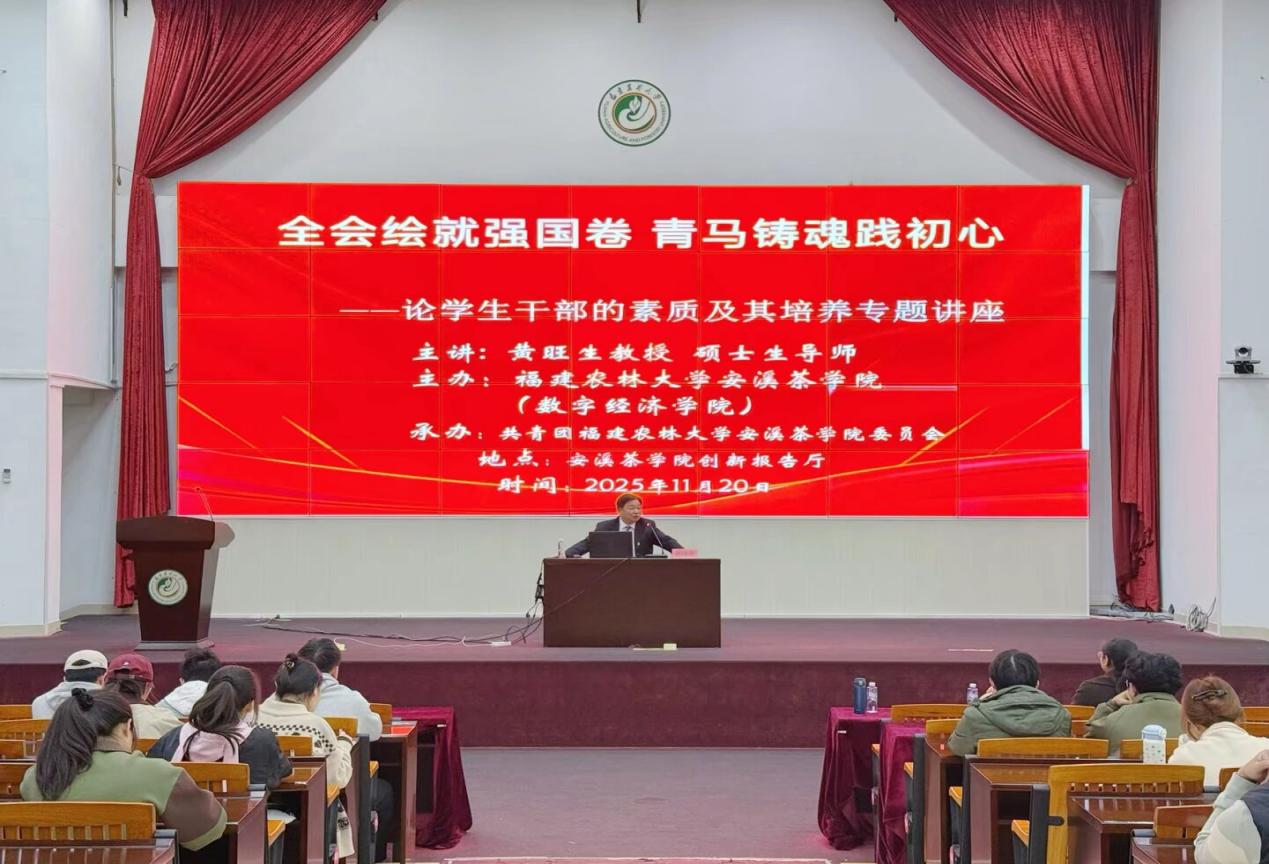 11月20日,安溪茶学院(数字经济学院)于校区组织开展“全会绘就强国卷,青马铸魂践初心”第十二届“青马工程”学生骨干培训班第二期。本期培训特邀马克思主义学院教授黄旺生担任主讲嘉宾,培训由辅导员郭贤娜主持。