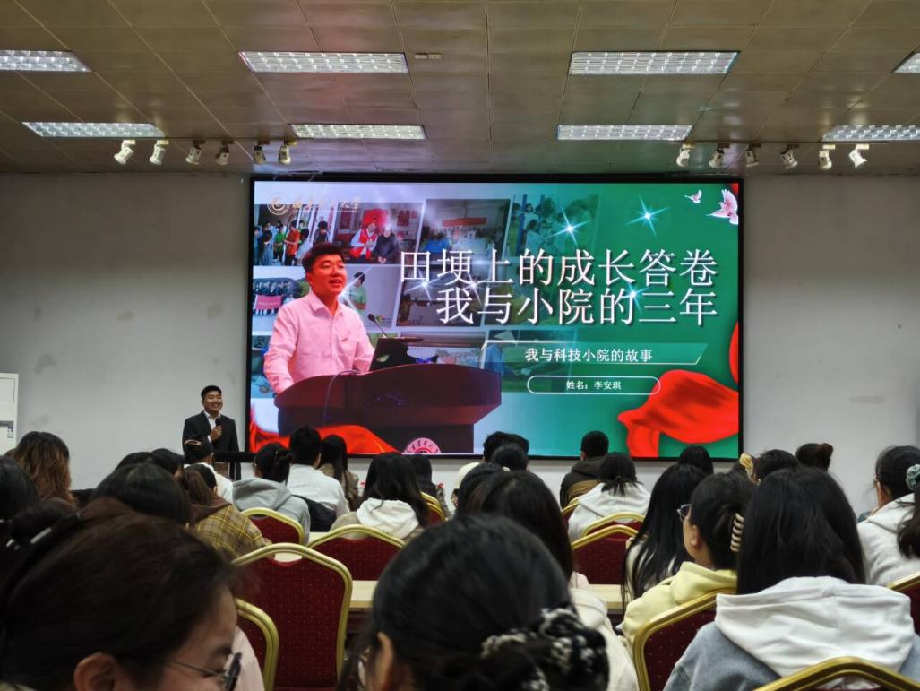本科生李安琪同学讲述了他与科技小院“相识、相知、相伴”的成长故事。从最初对农村工作的陌生与好奇,到如今扎根小院、服务农户的熟悉与热爱,他坦言科技小院是他理论联系实际的“最佳课堂”,也是他思想得到淬炼、信念更加坚定的“红色熔炉”。他的讲述真挚动人,展现了积极向党组织靠拢的优秀青年在基层实践中锤炼党性、增长才干的蓬勃朝气。