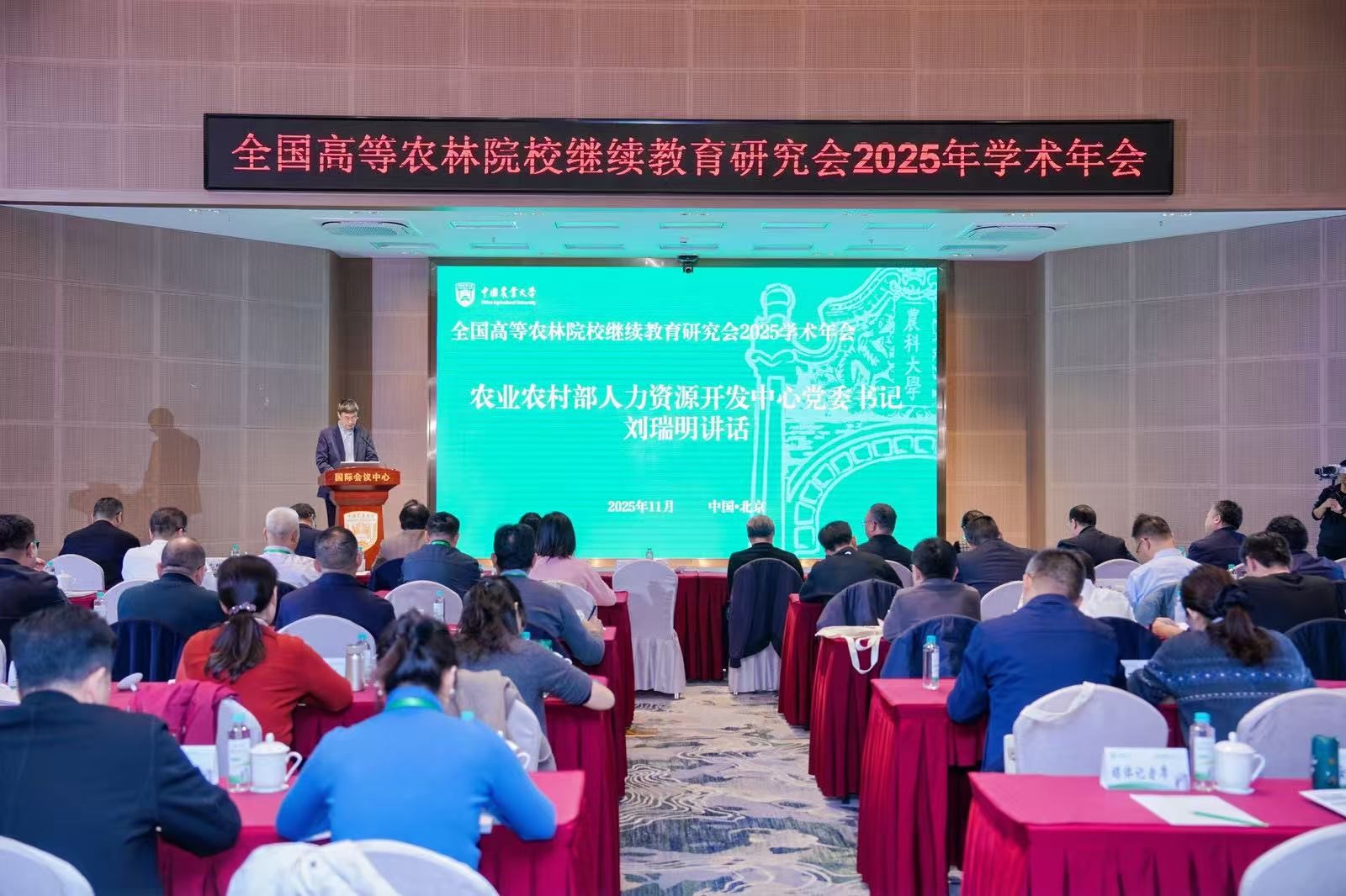 11月17日至19日,全国高等农林院校继续教育研究会2025年学术年会在中国农业大学隆重召开。农业农村部人力资源开发中心党委书记刘瑞明、教育部职业教育与成人教育司高等继续教育处副处长(主持工作)徐璐、中国农业大学党委常委、副校长林万龙等领导嘉宾出席会议,全国各高等农林院校代表齐聚一堂,共商数智时代继续教育创新发展路径,共话乡村振兴人才培育使命。开云网页版乡村振兴学院(继续教育学院)副院长(主持工作)范胜龙、副院长李文灿、教育融合专员刘飞翔参会,以高质量继续教育发展成果、优质主题报告、创新“头雁”培育展板,赢得兄弟院校广泛关注与高度认可。