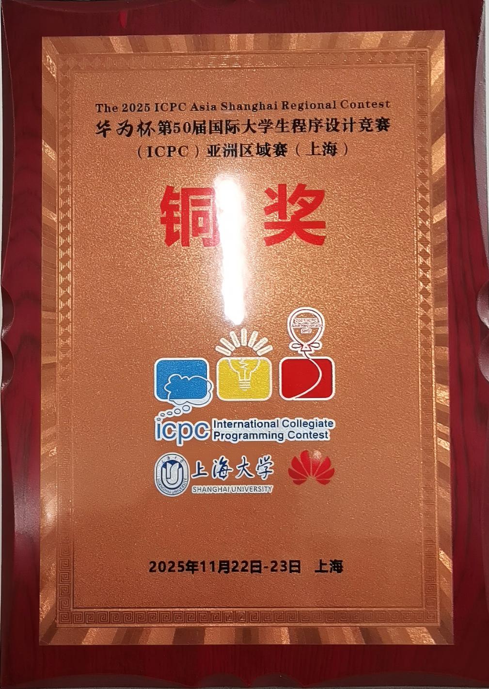 近日,第50届ICPC国际大学生程序设计竞赛亚洲区域赛(上海站)在上海大学落幕。我校计算机与信息学院学子组成的参赛团队凭借扎实的专业功底和出色的团队协作,获得一枚铜奖,为学校赢得了荣誉。