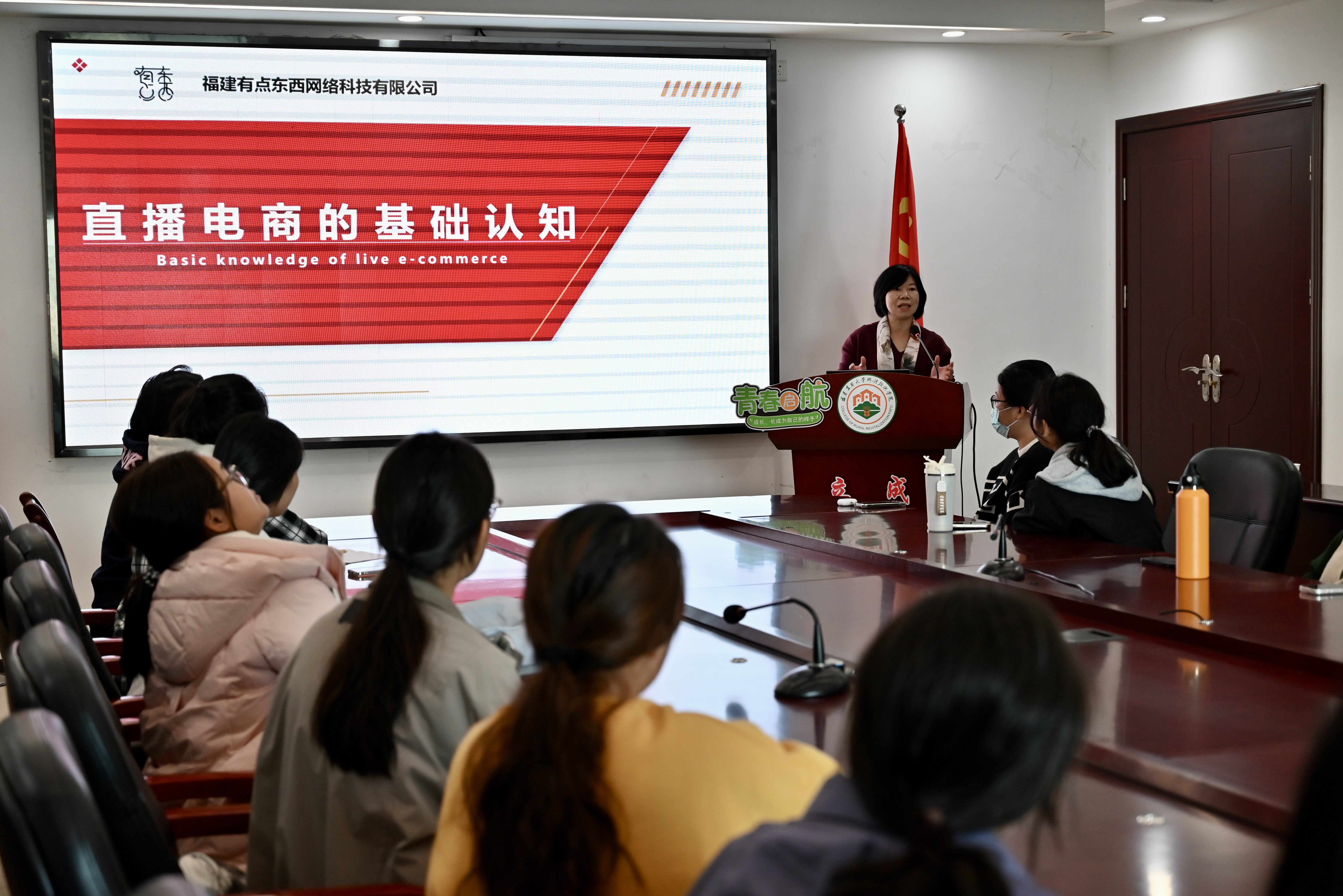 为助力大学生科学规划学业生涯、精准锚定学习方向,11月23日上午,乡村振兴学院于东苑10号楼512会议室“直播电商的基础认知”讲座开讲。此次讲座邀请福建有点东西网络科技有限公司资深培训讲师刘雯雯主讲,乡村振兴学院党委副书记陈玲凤、学院本科生辅导员林婉婷以及直播助农班的同学共同参与。