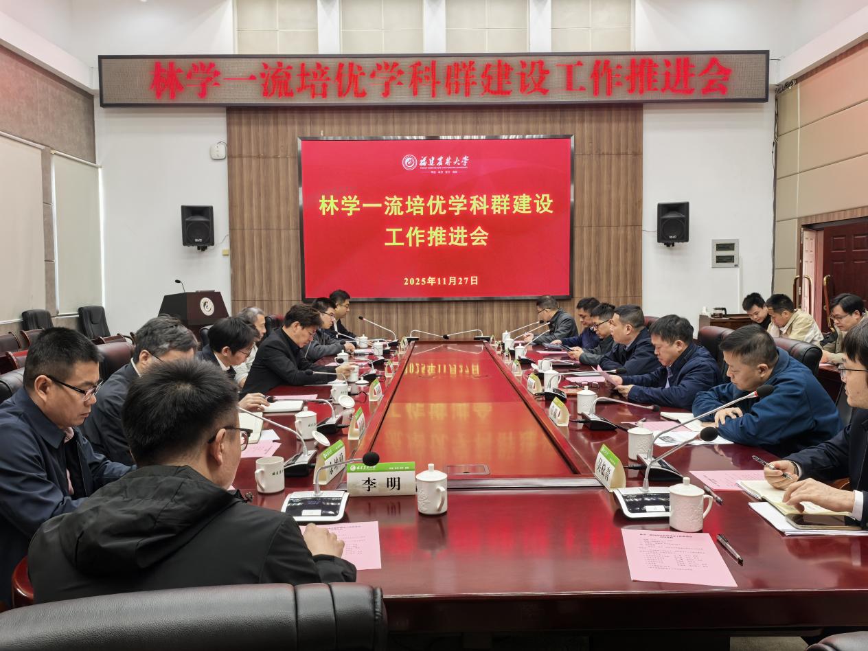 11月27日上午,林学一流培优学科群建设工作推进会在明德楼武夷厅召开。副校长周顺桂主持会议,林学一流培优学科群建设委员会成员,发展规划处、计划财务处负责人,林学一流培优学科群参与学院班子成员,林学院班子成员、各系主任,科研团队负责人和骨干教师参加会议。