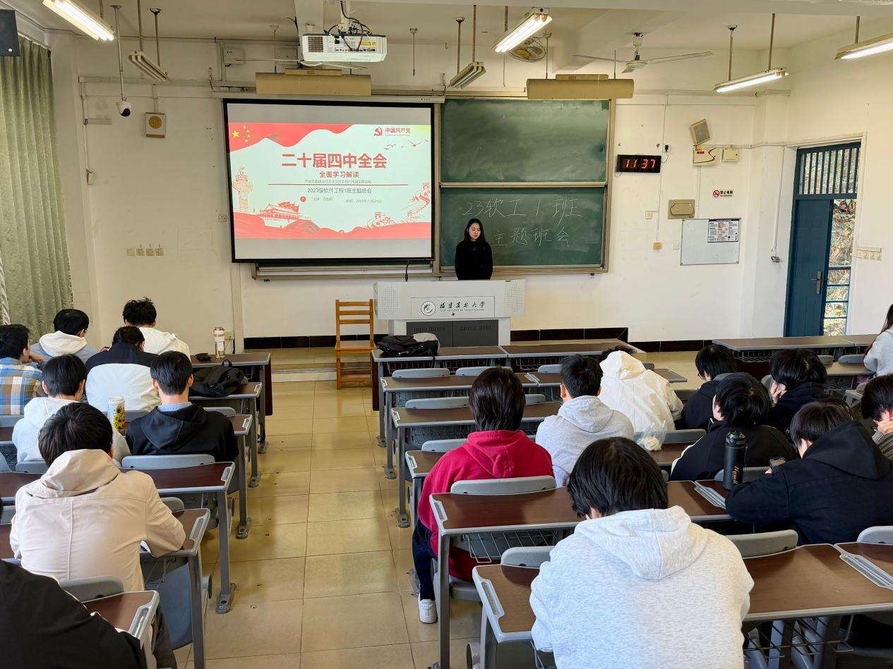 为深入学习贯彻党的二十届四中全会精神,近期,计算机与信息学院各班级开展“学习贯彻党的二十届四中全会精神 青春建功‘十五五’”主题班会。各班级以多种形式开展班会活动,引导同学们在学习中深化理论认知,在实践中践行强国使命,让全会精神在青春奋斗中落地生根。