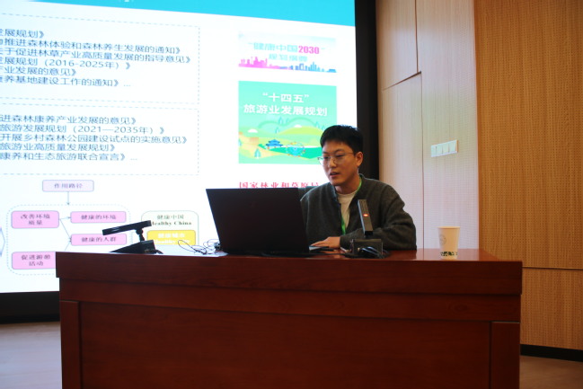 专题报告由开云网页版丁国昌教授主持。报告会上,专家们围绕“生态保护—旅游发展—健康福祉”多维议题展开交流。吴妍副教授以《森林公园康养效能研究》为题作报告,聚焦森林康养的作用机理与效能提升;付晖副教授以《协调生态保护与旅游发展:海南热带雨林国家公园景观格局与栖息质量的时空关联与启示》为题做报告,探讨保护与利用协同路径;贾星星作题为《森林公园游客积极情绪的影响因素与阈值效应研究》的报告,从游客体验与情绪响应角度解析影响机制,为提升游憩服务质量与产品供给优化提供依据;白政康围绕《从绿色到黄金:中国城市公园的货币化与心理价值细分》讨论城市公园多维价值表达;蒋溢楠报告《流动的自然体验——基于网络文本的西藏徒步旅行者生态感知与心理恢复研究》,呈现自然体验与心理恢复的关联;厉晨宇以《植物芳香气味在森林康养环境构建中的机制研究探讨》为题,交流森林康养环境营建的前沿方向。赵雯静以《锡林郭勒草原生态产品价值核算及优化路径》为题作报告,从生态产品价值实现与核算方法出发,提出价值提升与路径优化思路,为区域生态资源高效转化提供参考。