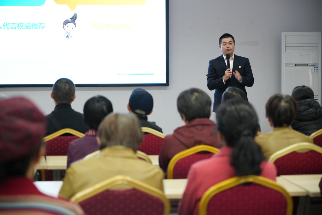 中国农业银行福州仓山支行青年志愿者林雷通过案例剖析为老同志们生动讲解如何保护个人信息安全、远离非法金融广告陷阱和警惕虚拟货币陷阱等金融知识,为老同志送上“防骗知识大礼包”。