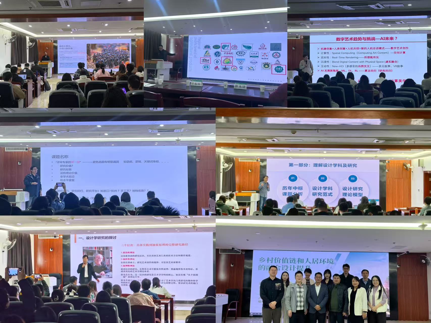 12月5日下午,广东工业大学艺术与设计学院卢世主教授担任主讲嘉宾。卢世主教授以 “设计研究与社科项目文本写作”为主题,从深耕学术积累、精准选题、文字表达规范、关注项目政策要求、活页模块内容等多个方面展开详细讲解。讲座后,6位教师依次汇报申报课题,卢世主教授针对申报书的学术规范、框架结构等逐一点评,帮助教师优化内容。会后,师生还与教授进行深入沟通交流,现场反响热烈。