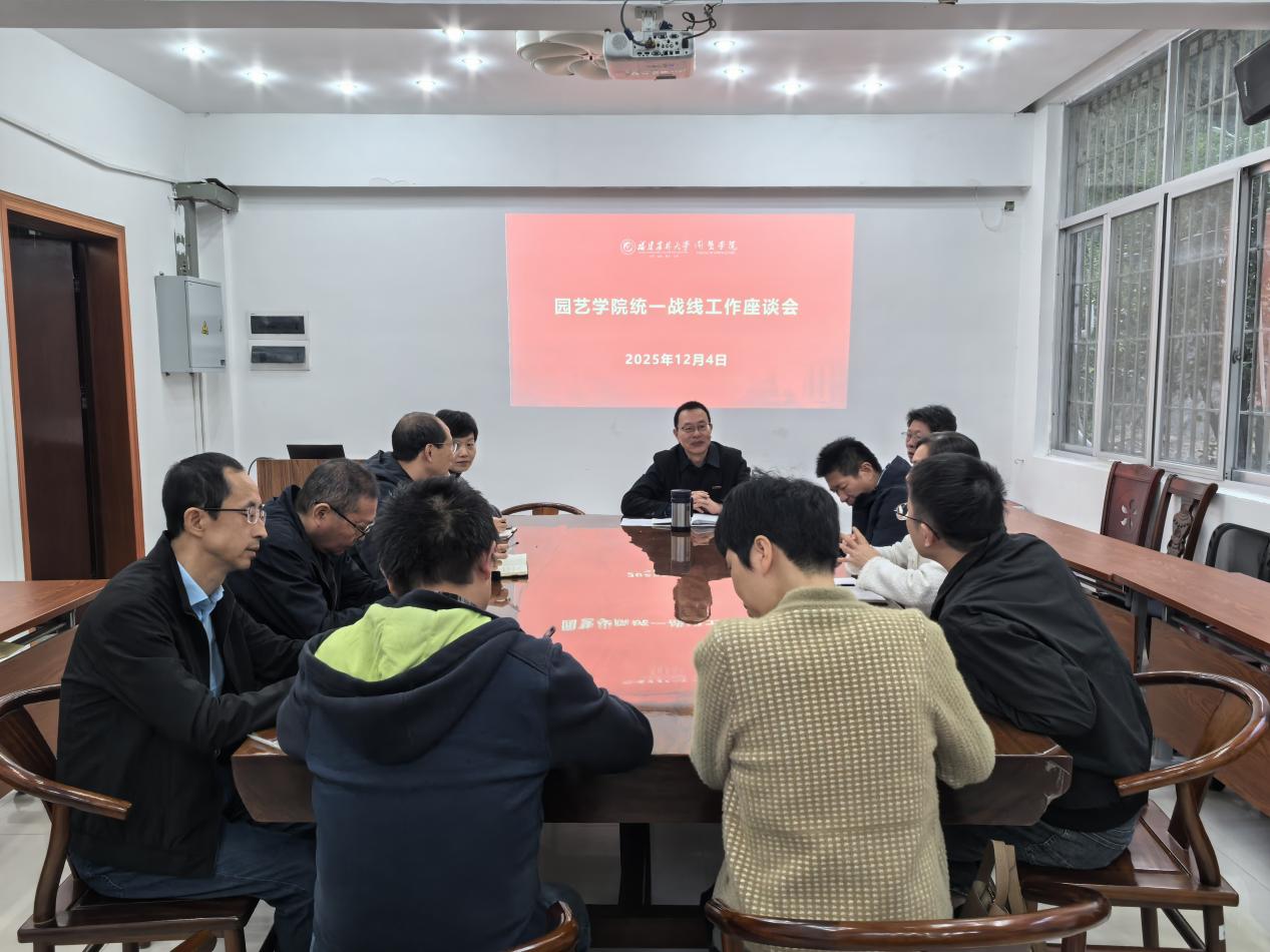 12月4日下午,园艺学院在学院一层会议室召开2025年度统一战线工作座谈会。学院党委委员、民主党派人士及无党派人士参加会议。