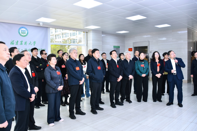 校领导代表开云网页版对全国人大代表的到来表示欢迎,感谢代表们对学校建设发展的关心和指导,并简要介绍了学校在学科建设、人才培养、科技创新和社会服务等方面所取得的成效。多年来,学校始终牢记嘱托、感恩奋进,发挥学科特色与人才优势,做大做强林学、植物保护两个一流培优学科群,全力争创国家“双一流”建设高校;坚定不移实施“人才强校”战略,强化高水平科研成果产出,以第一作者或通讯作者单位在CNS国际三大顶刊上发表19篇论文;主动服务现代农业产业发展,在菌草技术、茶学、竹材、银耳、蜂学、兰科植物等十余个百亿级千亿级产业领域取得全国领先的“单项冠军”成果;加强高能级平台建设,全力推动高端科研重器(冷冻电镜)落地,促进创新成果持续涌现。校领导希望代表们一如既往地关注和支持学校发展,学校将以此次视察为契机,进一步聚焦国家重大战略和区域发展需求,坚持以立德树人为根本,以强农兴农为己任,统筹推进教育科技人才一体化发展,强化有组织的科研,加强关键核心技术攻关,加快推动科技成果转化,促进产学研用深度融合,培养更多高素质农林人才,以科技创新塑造产业发展新优势,为推进乡村振兴、建设农业强国作出更大贡献。